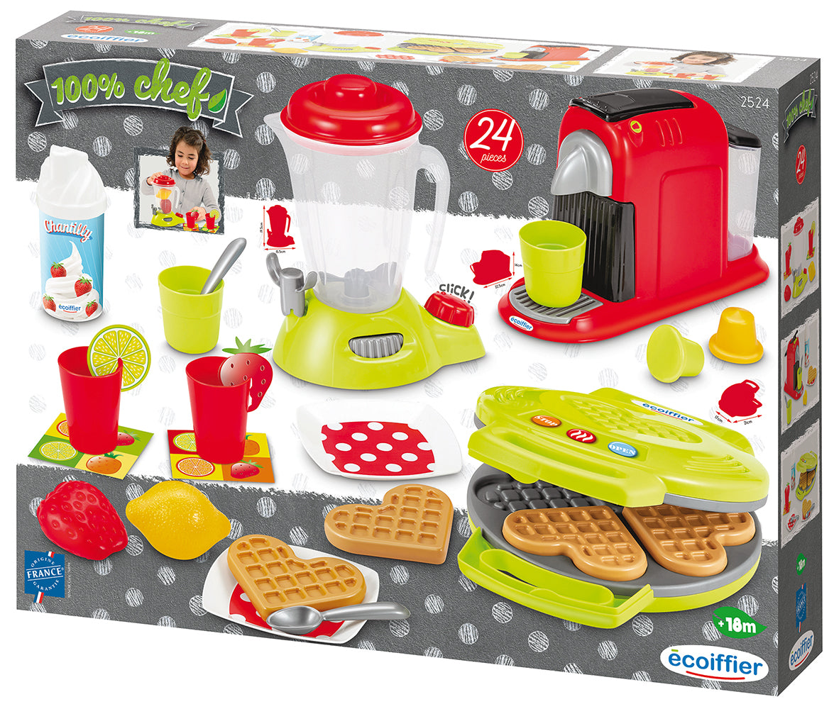 Aparatul de vafe cu mixer si aparatul de cafea Small Household Appliances de la producatorul frantuzesc Ecoiffier este un set excelent pentru fiecare copil de la 18 luni, caruia ii place sa se joace de-a bucatar.