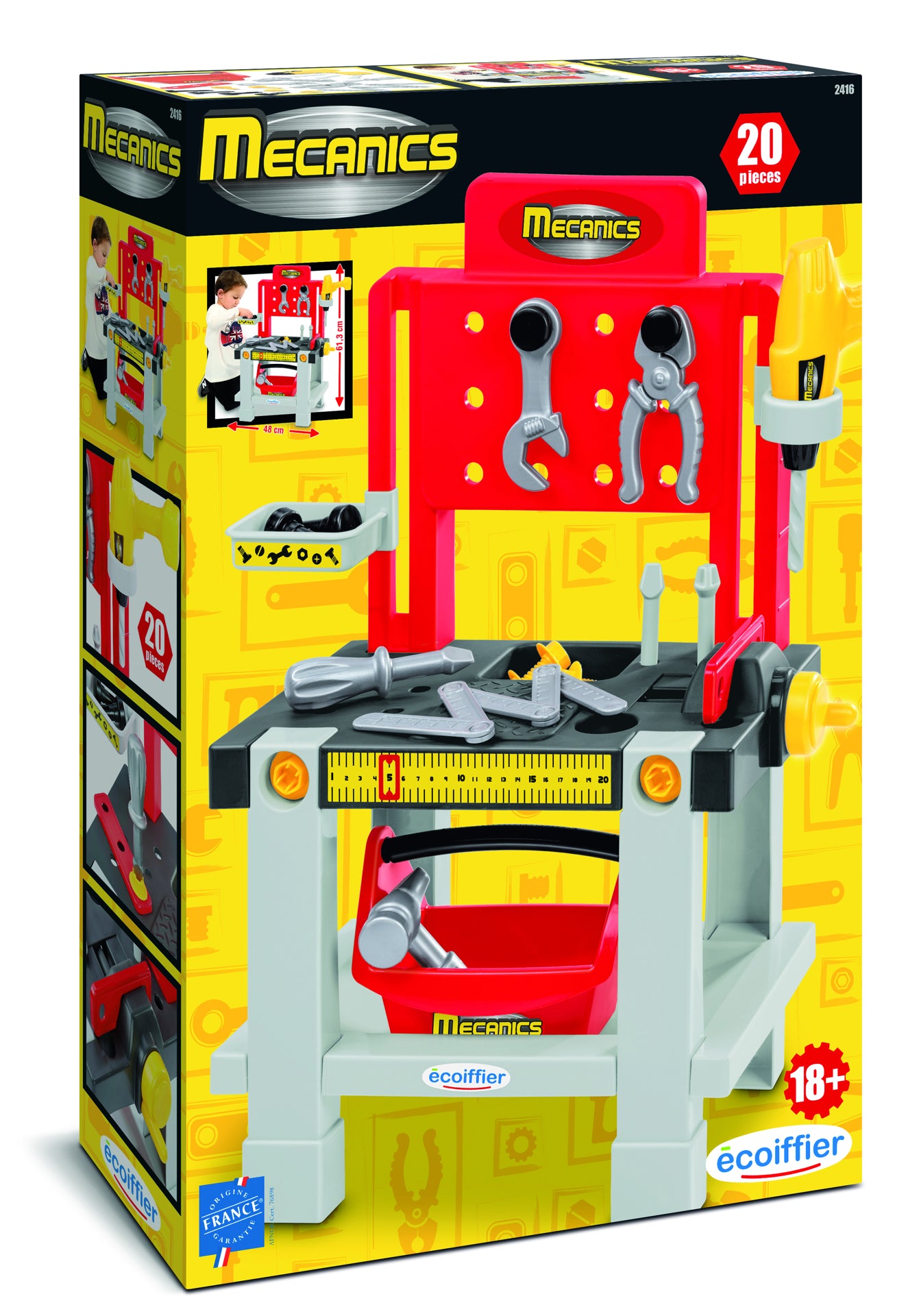 Atelierul de lucru cu 20 accesorii de la Ecoiffier va fi cu siguranta o idee de cadou perfecta. Copiilor le place sa-si imite taticii atunci cand fac bricolaj. Prin urmare, vor fi incantati de atelierul practic cu o multime de accesorii si unelte. Toate elementele au fost realizate avand in vedere mainile bebelusului. Lipsa muchiilor ascutite si calitatea buna a materialului fac ca produsul sa fie sigur pentru copiii nostri. Setul va garanta multe ore de mare distractie. Bucuria unui copil nu are pret!