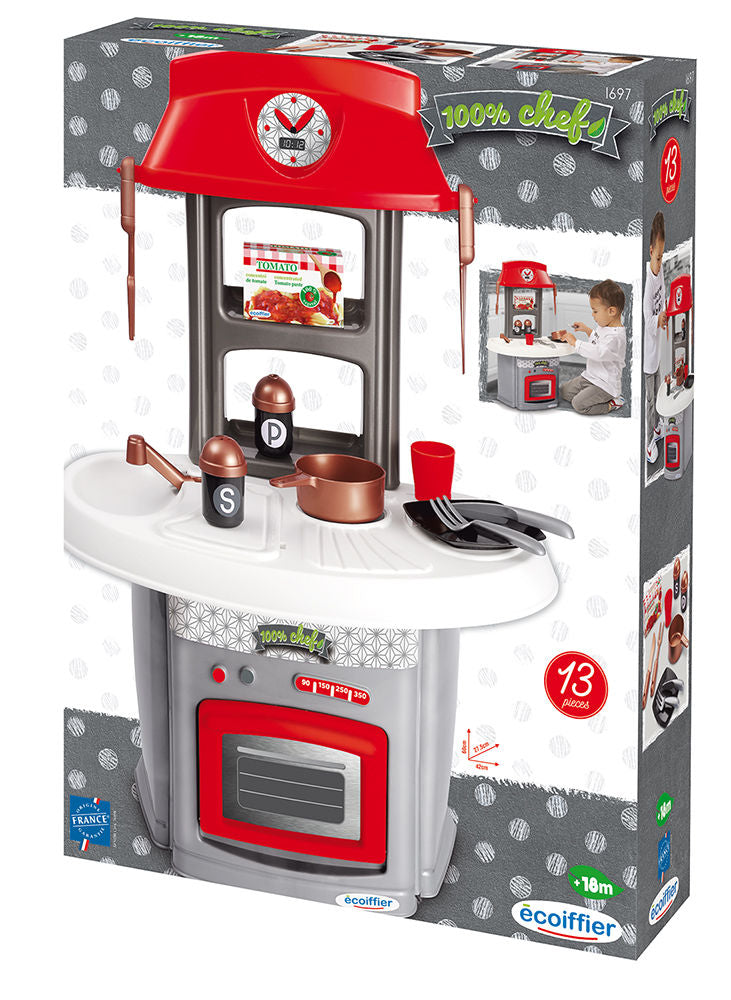 O bucatarie excelenta pentru gatirea preparatelor excelente. Lasa-l pe cel mic sa se familiarizeze, printre altele, cu gatitul si spalatul intr-un mod jucaus. In aceasta mica bucatarie exista tot ce are nevoie pentru a gati ca un adevarat bucatar. Aceasta bucatarie este formata dintr-un cuptor, o chiuveta, o plita, un raft si diverse accesorii: farfurie, tacamuri, cratita, condimente.