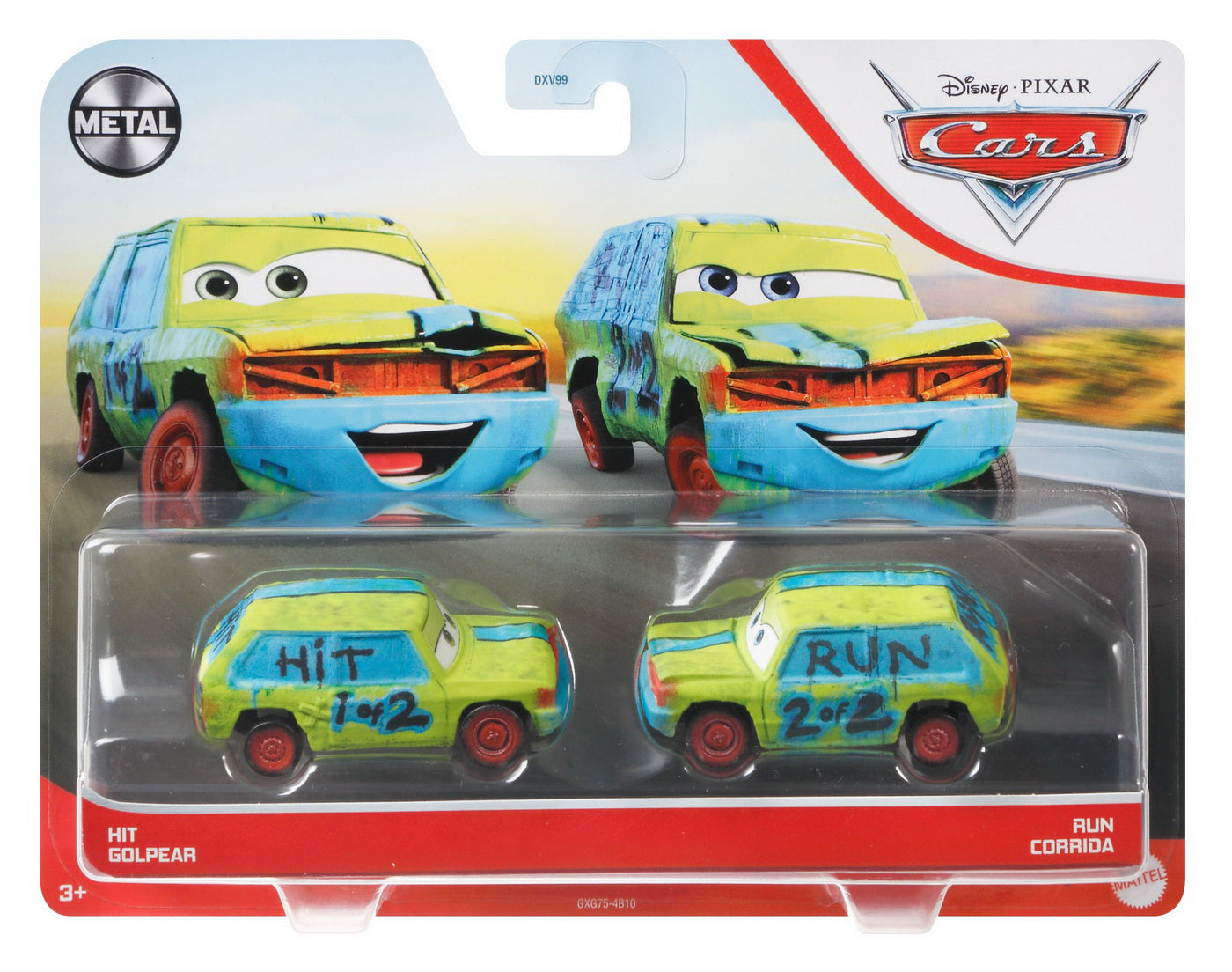 Cu noile masinute Cars cei mici se pot juca si repune in scena cursele din filmul Disney Cars. Masinutele metalice infatiseaza fidel personajele Hit Golpear si Run Corrida. Seturile Disney Pixar Cars 3 aduc in prim-plan personajele preferate ale animatiei! Fiecare vehicul este realizat la scara 1 la 55 si are un design unic, culori si detalii ca originalele. Copiii pot crea scenarii diferite si episoade de aventura folosind perechile de masini favorite! Machetele de masini sunt alegerile perfecte atat pentru copii, cat si pentru colectionari! Alegerea ideala pentru un cadou destinat copiilor ce indragesc masinile si drift-urile! Sa inceapa cursa!
