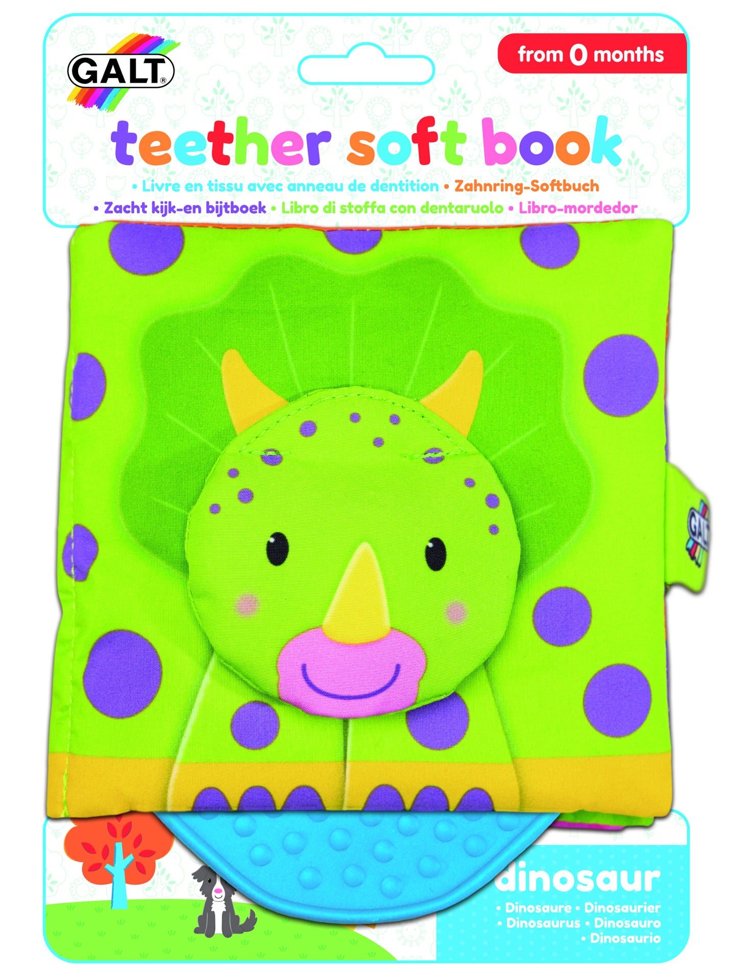 Carticica are pe coperta un dinosaur al carui cap chitaie, spre amuzamentul bebelusului. Caracteristici: contine 8 pagini amuzante, realizate din material moale cu texturi diferite, paginile captusite cu plus fosnesc, pentru calmarea gingiilor celui mic, cartica este prevazuta si cu o jucarie pentru dentitie.