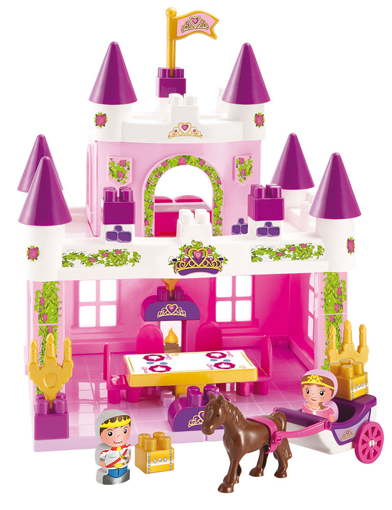 Castelul fabulos intr-o combinatie de culoare roz, mov si alb cu accesorii aurii dispune de tot ceea ce poate fi nevoie intr-un castel. Bineinteles nu lipseste nici minunata printesa care asteapta printul pe trasura.