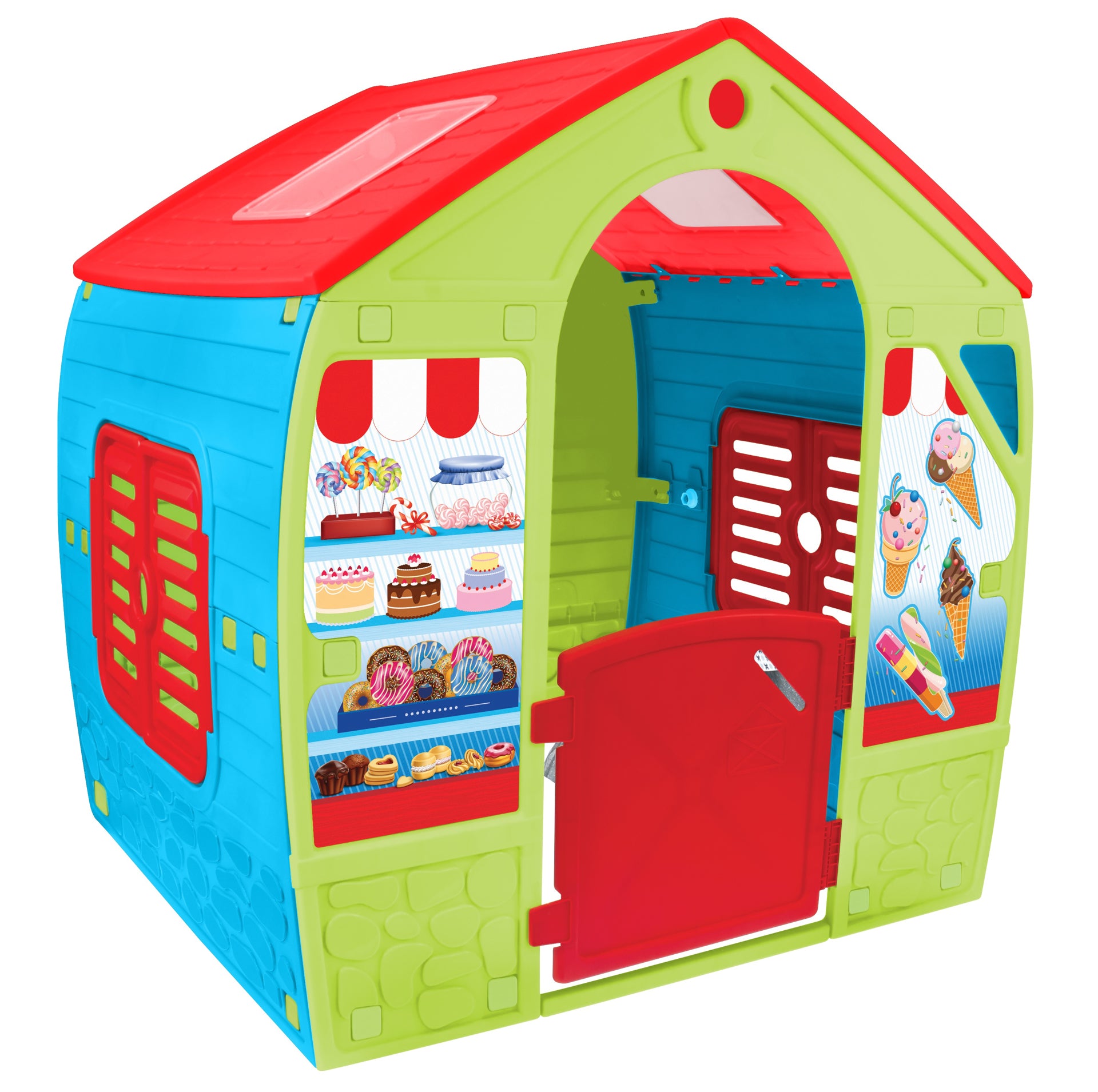 O minunata casuta frumos decorata, Candy Shop ii va oferi micutului tau ore intregi de distractie si voie buna. Casuta este realizata in culori vesele,este spatioasa si luminoasa,ideala pentru gradina. Durabila si solida,casuta se adreseaza micutilor activi care adora joaca in aer liber.