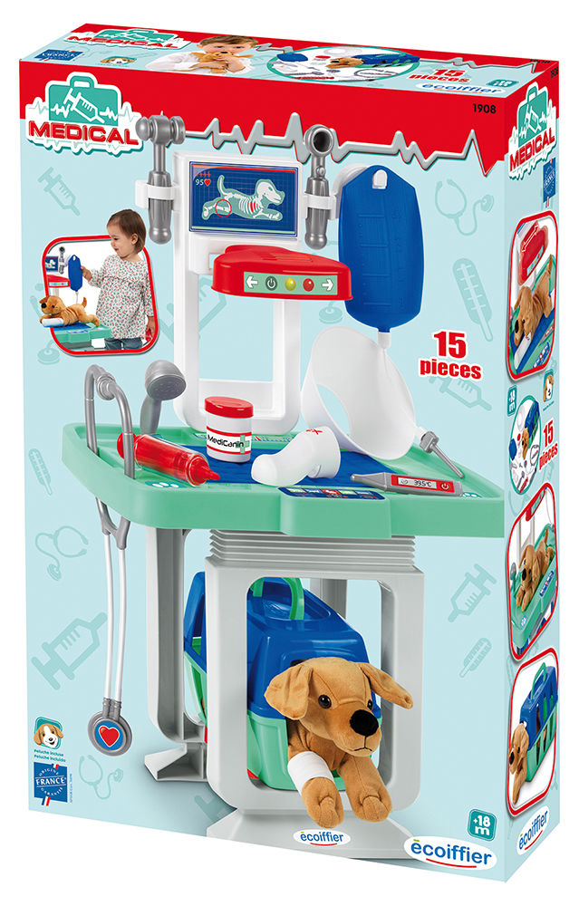 Setul contine 15 accesorii printre care se afla perfuzie, injectie, termometru, radiografie, ciocanel reflex, stetoscop si alte accesorii care sunt indispensabile in ingrijirea preferatilor nostri.