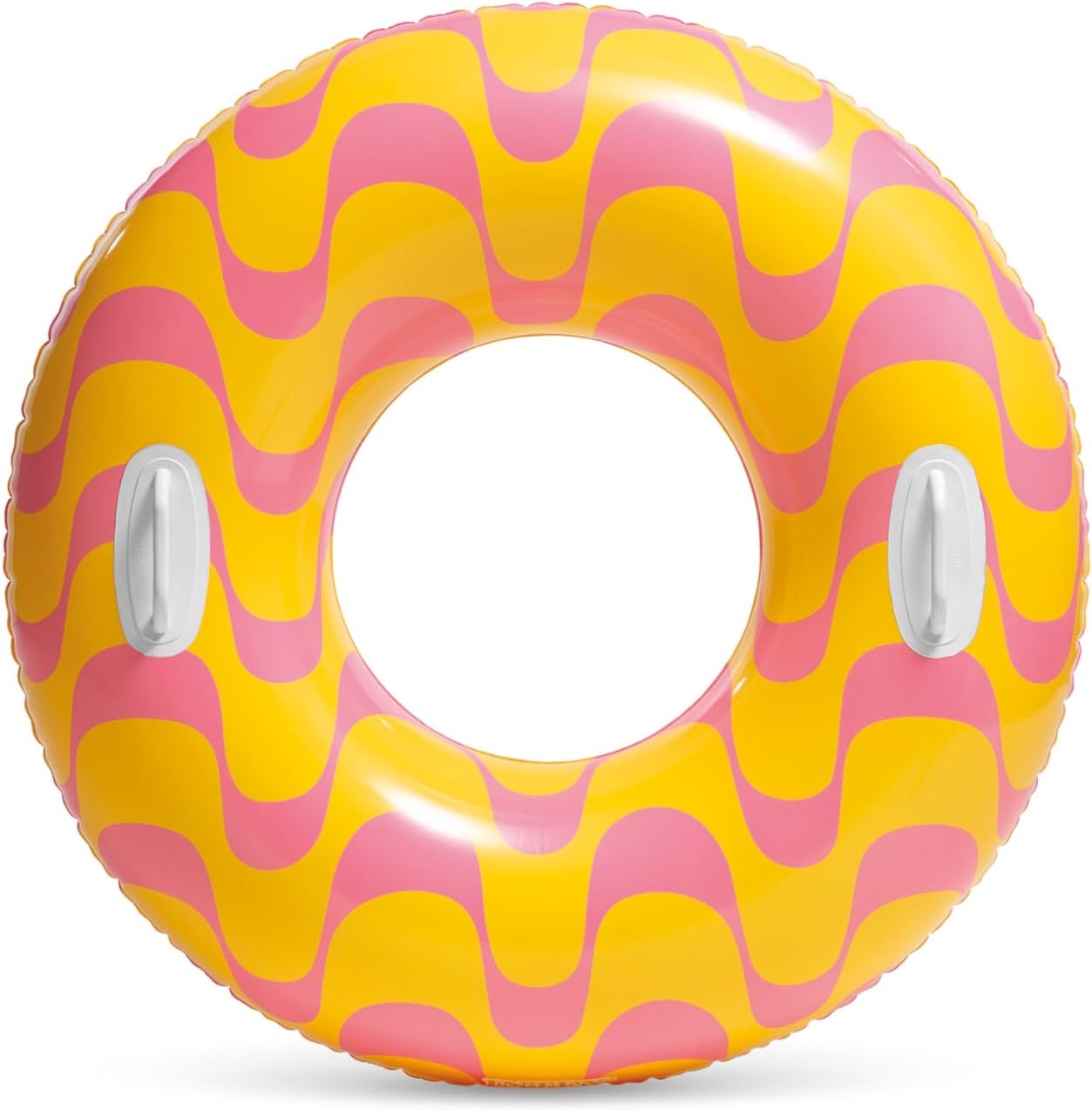 Bucura-te de vacanta ta cu stil. Eleganta si originala colacul INTEX 70`s iti permite sa alternezi intre inot si relaxare.