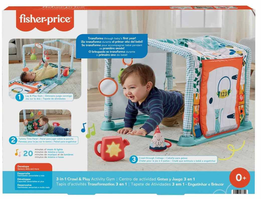 Covorasul de joaca Sweet Home convertibil Fisher-Price ofera 3 optiuni de joaca in functie de nivelul de dezvoltare al copilului.