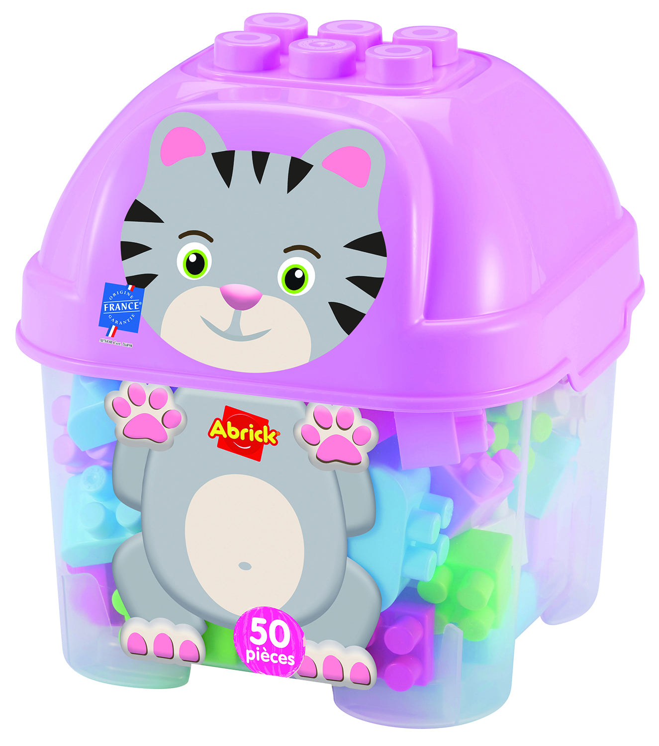 Cuburile colorate se asambleaza usor unul in celalalt astfel toti copii cu varsta de peste 18 luni se pot distra cu ele. Cutia practica de depozitare are aspectul unei pisicute veseal, care cucereste inima fiecarui copil.