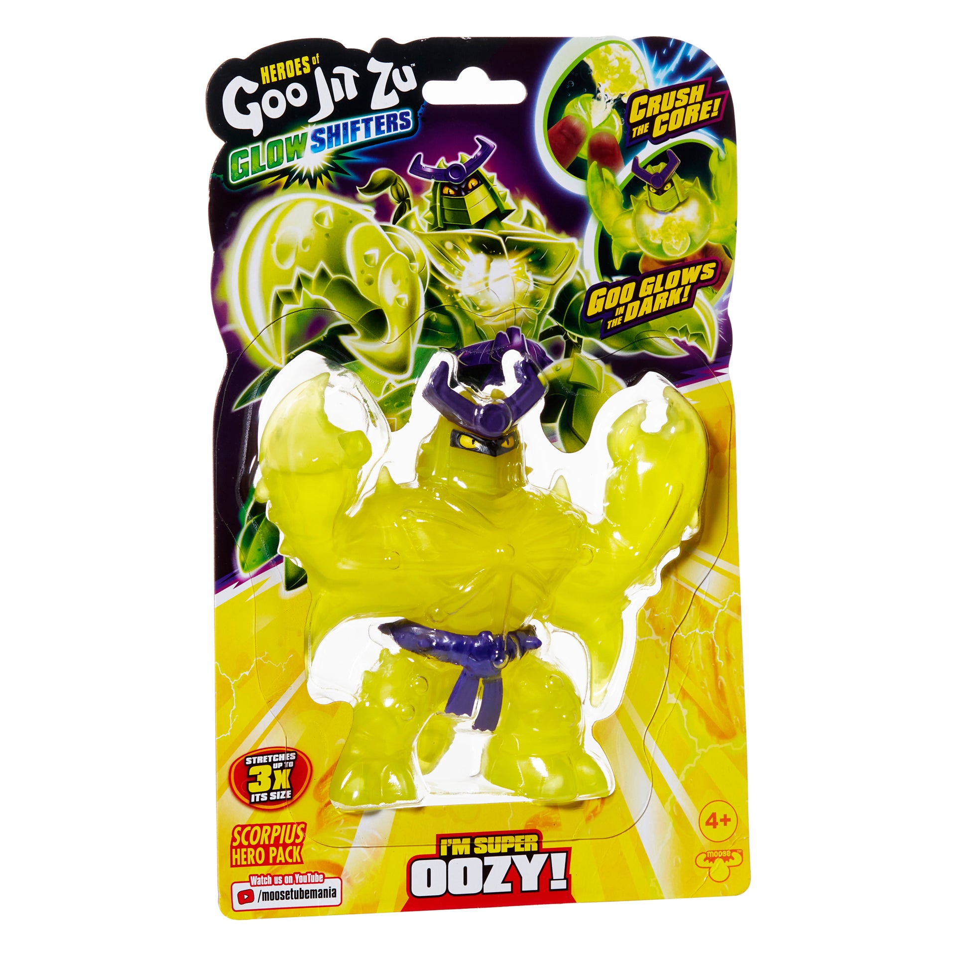 Pregateste-te pentru o actiune puternica Glow-in-the-Dark! Eroii din Goo Jit Zu Glow Shifters sunt aici! Scorpiusl super elastic si moale favorit al tuturor a revenit si este gata sa fie alimentat! Zdrobeste miezul lui Scorpius pentru a-si activa „formatia Goo” stralucitoare si puterea lui interioara! Prietenii lui Scorpius, Tyro si Bengal, s-au intors, de asemenea, si au un nucleu special stralucitor, care se formeaza „Goo-forming”. Eroii nostri vor avea nevoie de tot ajutorul pe care il pot primi atunci cand se confrunta cu Scorpius si insotitorul sau, Ultra Rare Gigatusk, care are o functie „Water Blast Attack”.