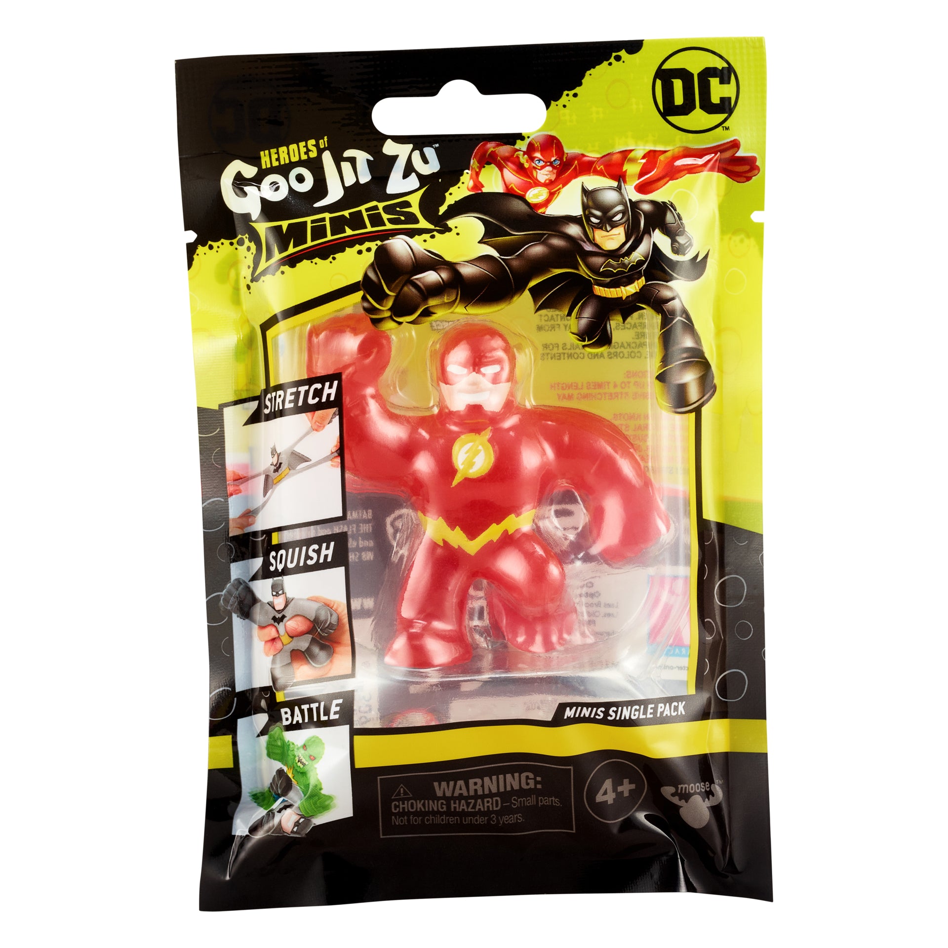 Toti eroii tai DC preferati sunt disponibili in aceasta gama Mini Goo Jit Zu, inclusiv Stealth Armor Batman, Metallic Batman, Gold Armor Aquaman, Speed Force Flash, Killer Croc, King Shark si Translucent King Shark si chiar Kryptonian Steel Superman!