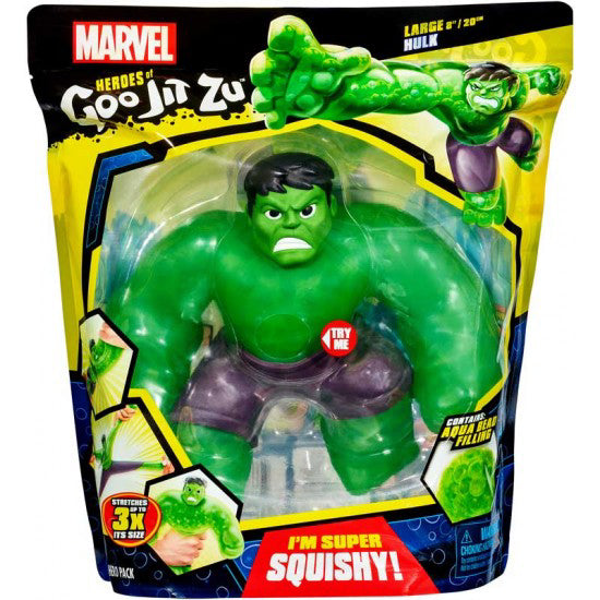 Super-Dimensionat si Super Squishy! Hulk este cel mai bun erou smecher si prost! La fel ca alte personaje Heroes of Goo Jit Zu, are un corp unic plin de goo, dar acum are o inaltime mare de 20 cm! Eroii din Goo Jit Zu sunt cei mai straluciti, mai intinsi si mai buni eroi vreodata!