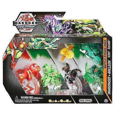 Va prezentam noul pachet de batalie a evolutiei Bakugan! Pachetul de batalie este cel mai bun element de colectie - contine un Bakugan Platinum forjat in metal adevarat, 2 Bakugan, 1 Geogan, 2 Nanogan, 6 BakuCores, 3 carti de personaj, 3 carti de abilitati si 3 carti de poarta. Contine tot ce ai nevoie pentru a colecta, incaiera si multe altele! Bakugan-ul tau tocmai a devenit mai puternic ca niciodata cu aceste Bakugan-uri de platina indarjit in lupta - cate una in fiecare pachet facute din metal adevarat! Simte greutatea premium in maini in timp ce le rostogolesti peste BakuCores! Priveste cum Bakugan-ul tau se deschide si se transforma intr-o creatura feroce! Acesti campioni supergrei vor produce daune incredibile in lupta, ca niciodata pana acum. Intra in actiune cu prietenii impotriva lui Bakugan si iesi victorios! Pentru un atac surpriza, invoca-l pe Nanogan pentru a-ti imputernici Bakugan-ul si cucereste-ti adversarul! Nanogan se poate atasa la orice Bakugan pentru un impuls puternic in lupta. Nanogan are detalii translucide si modele impresionante! Amesteca si asorteaza ca sa creezi combinatia ta preferata si pentru a produce pagube incredibile in lupta. Foloseste cardurile de abilitate incluse pentru si mai multe moduri de a juca si de a castiga bonusuri! Adauga toate jucariile Bakugan Evolutions din sezonul 4 in colectia ta si construieste-ti propria echipa de vis! Du-ti bataile la nivelul urmator cu un nou pachet de batalie a evolutiei Bakugan! Acest pachet contine personajele: Dragonoid, Arcleon, Sectanoid si Nillious.