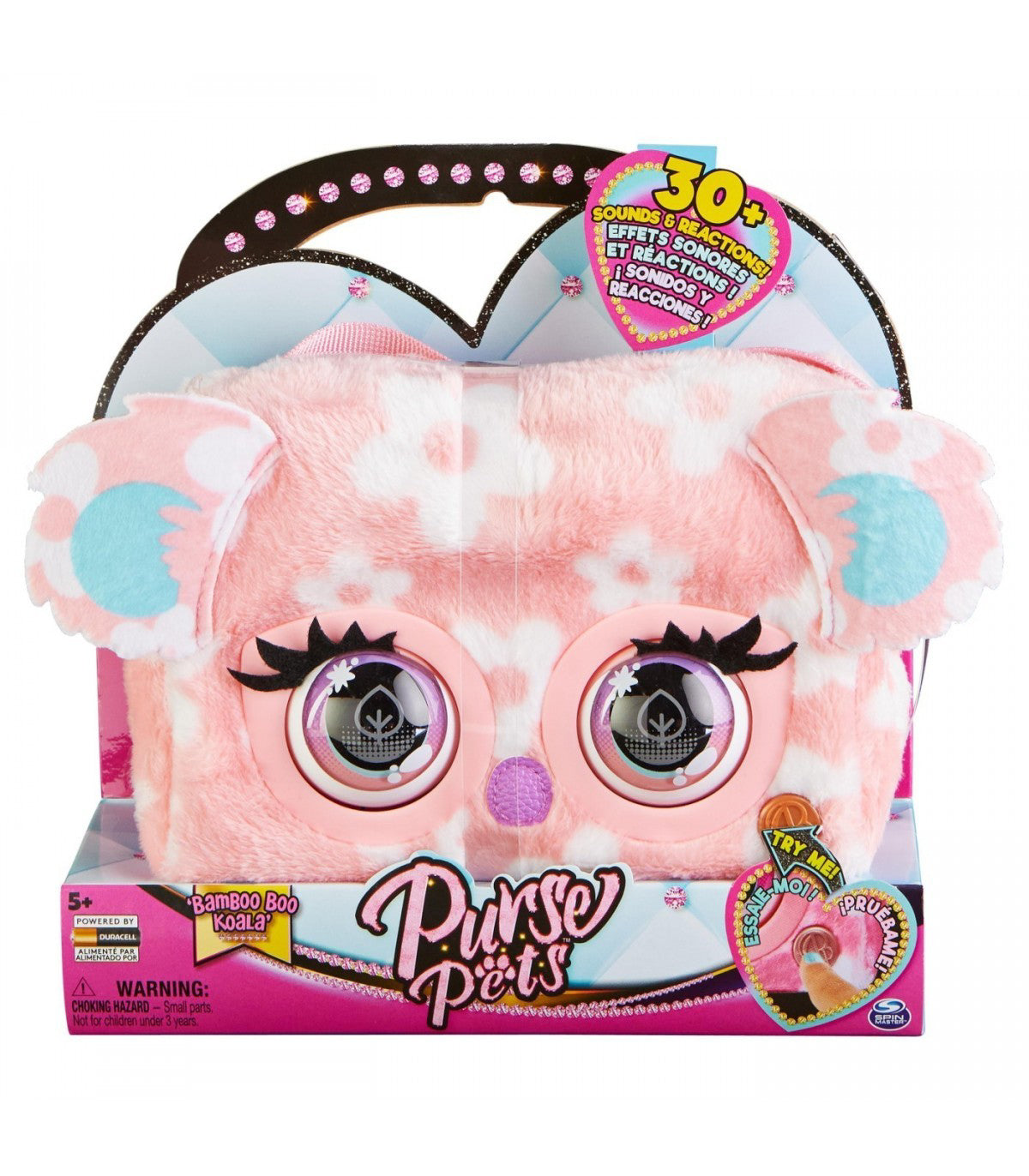Descopera gentutele Purse Pets! Aceste animale de companie interactive la moda sunt pline cu caracter de poseta. Ei raspund la atingerea ta, clipesc cu adevarat si au peste 30 de sunete si reactii interesante! Prezinta ochi inspirati de arta pop si o curea reglabila.