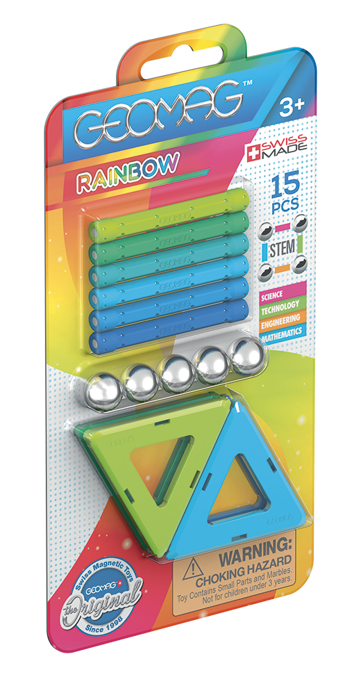 Geomag Rainbow este cea mai buna modalitate de a-l introduce pe cel mic in lumea fascinanta a fortelor magnetice. Este un sistem de constructie ingenios, dar simplu, cu tije metalice si bile de otel, cu ajutorul carora puteti crea un numar infinit de figuri si constructii tridimensionale.
