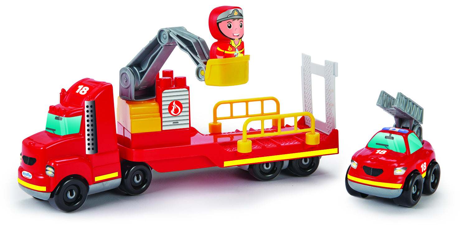 Cu acest minunat set Abrick de la Ecoiffier, copiii se pot distra scufundandu-se in lumea salvarilor. Pe langa o masina de pompieri mare cu o macara rotativa si hayon cu balamale, setul include o masina de pompieri, o figurina de pompier de jucarie. Masina de pompieri poate fi transportata pe camion prin hayon.