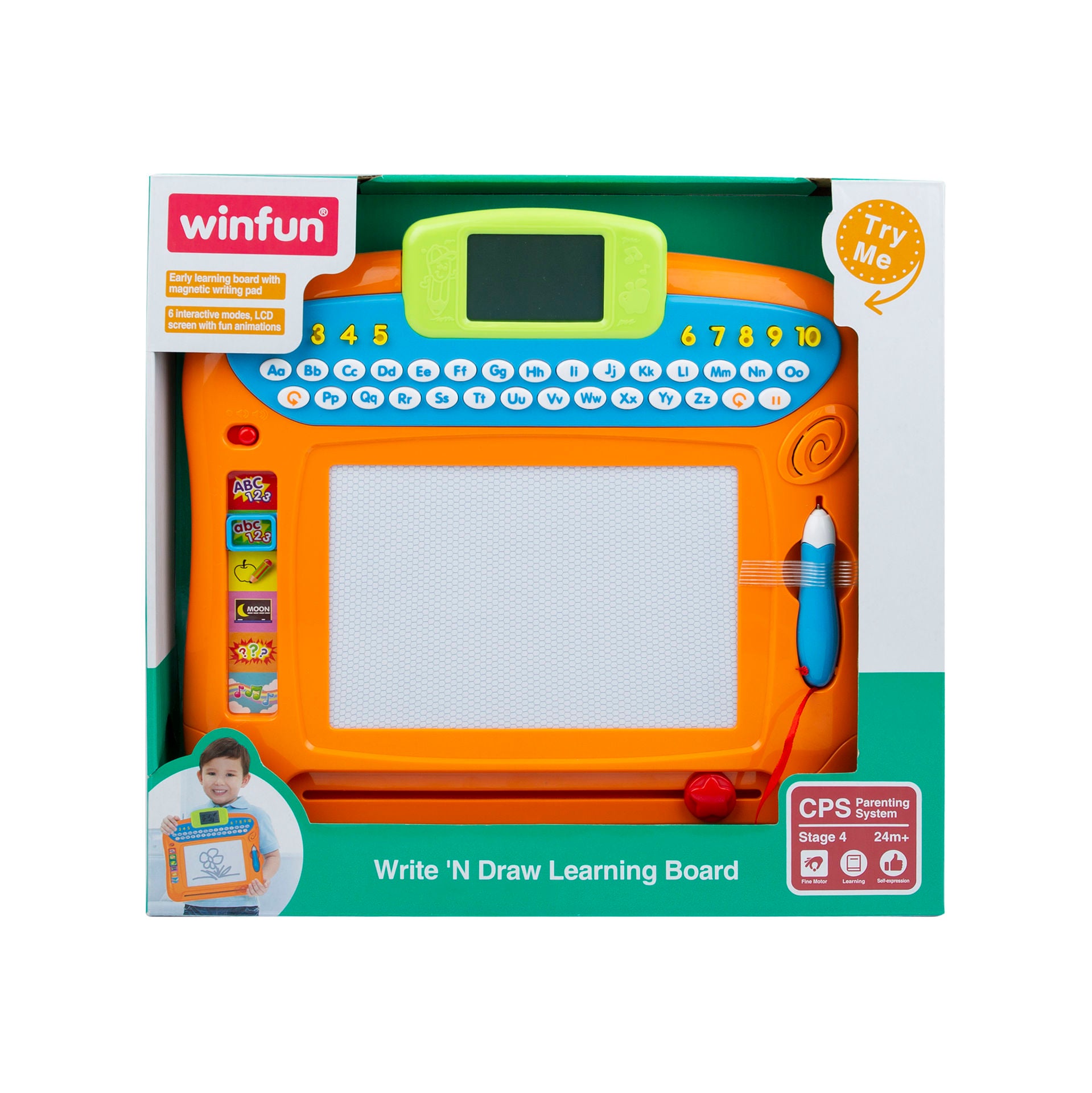 6 moduri interactive, inclusiv alfabet, numere, scrierea cu majuscule si minuscule, desen, ortografie, jocuri cu teste si muzica