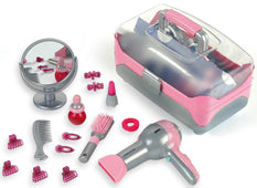 Continut: gentuta pentru accesorii, uscator de par, perie, piaptan, oglinda, accesorii de par: agrafe, elastic pentru par, oja.