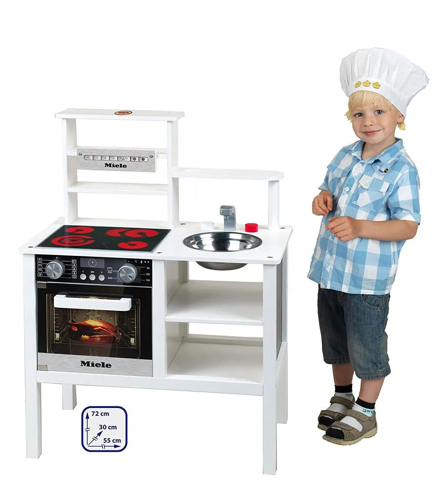 Oferiți copilului dumneavoastră o experiență de joacă distractivă, educativă și plină de imaginație cu bucătăria pentru copii Miele din lemn! Această bucătărie de joacă premium este creată special pentru micii pasionați de gătit și se potrivește perfect în orice locuință – chiar și alături de bucătăria reală.