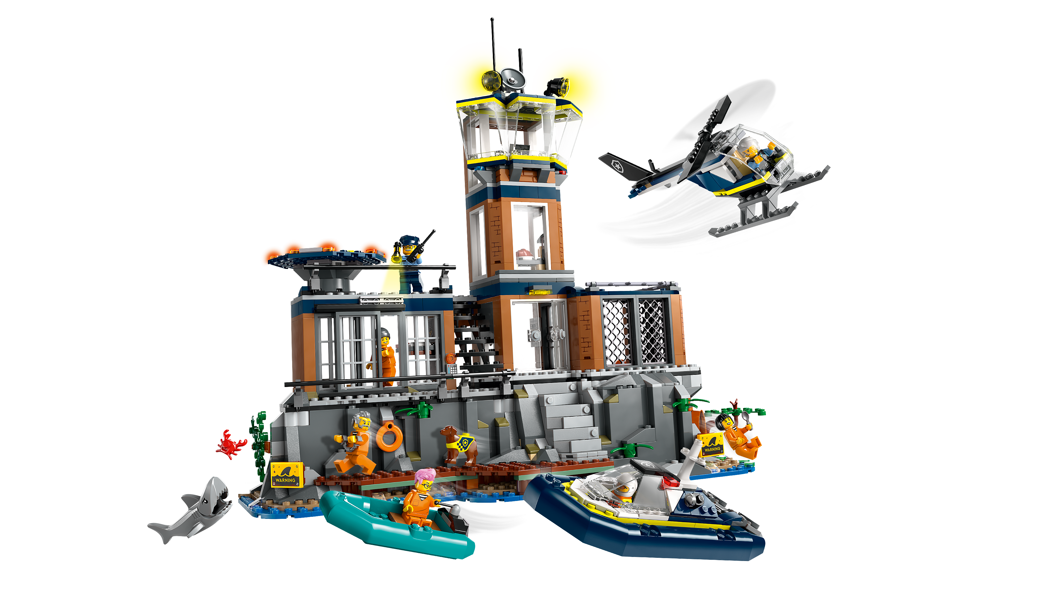 Tensiunile cresc pe insula-inchisoare, unde cei mai cautati infractori din LEGO® City pun la cale una dintre cele mai mari si mai indraznete evadari din istorie! in timp ce sosesc noi detinuti cu barca cu motor a politiei, ceilalti prizonieri sunt ocupati cu planurile lor. Fii cu bagare de seama din turnul de control si nu slabi din ochi elicopterul de politie. Aceasta inchisoare nu este atat de sigura pe cat pare! Se aude cumva un sunet de sapaturi?