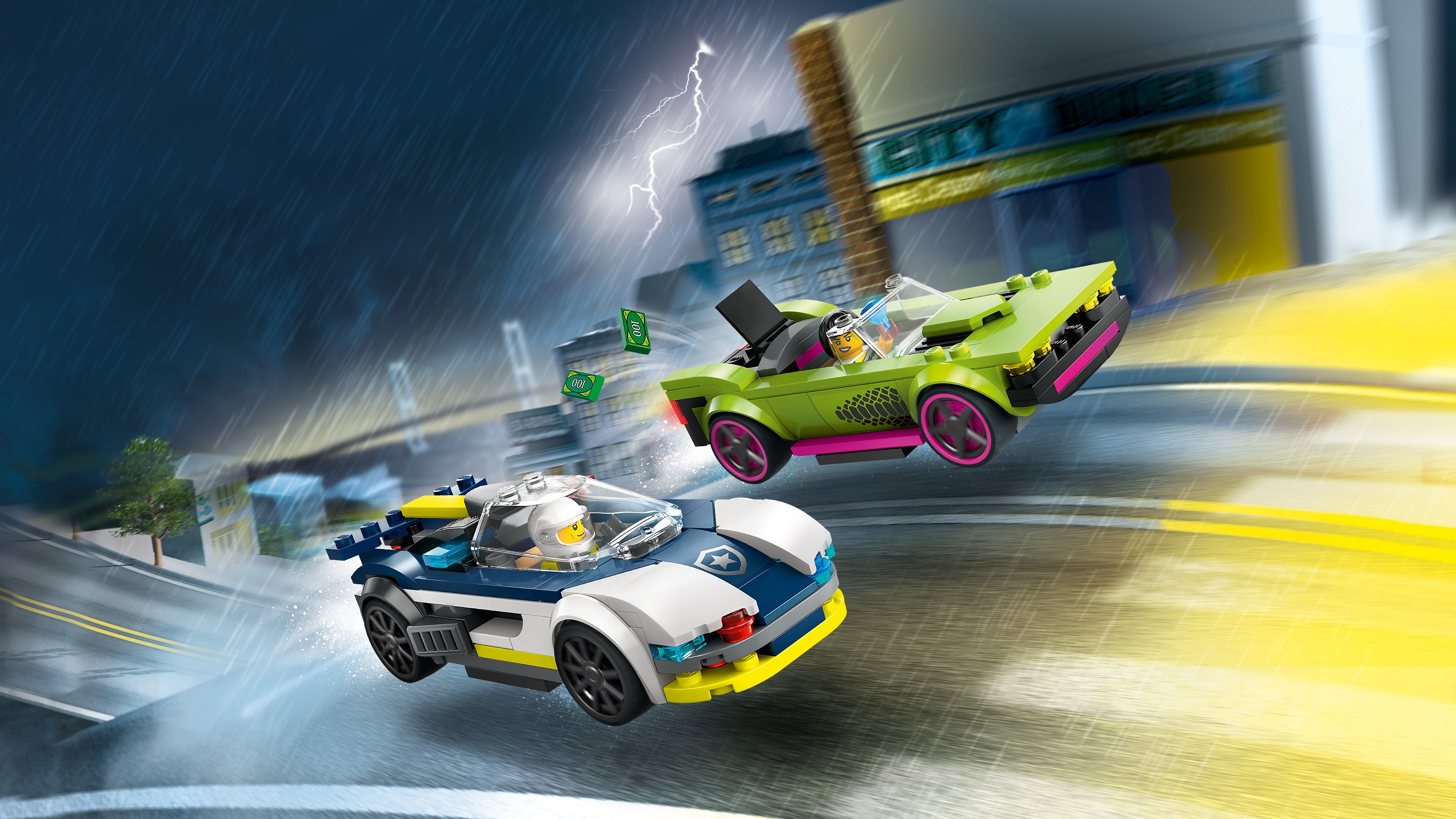 Set de joc LEGO® City cu masina pentru actiune distractiva cu urmarirea infractorilor de catre politie!