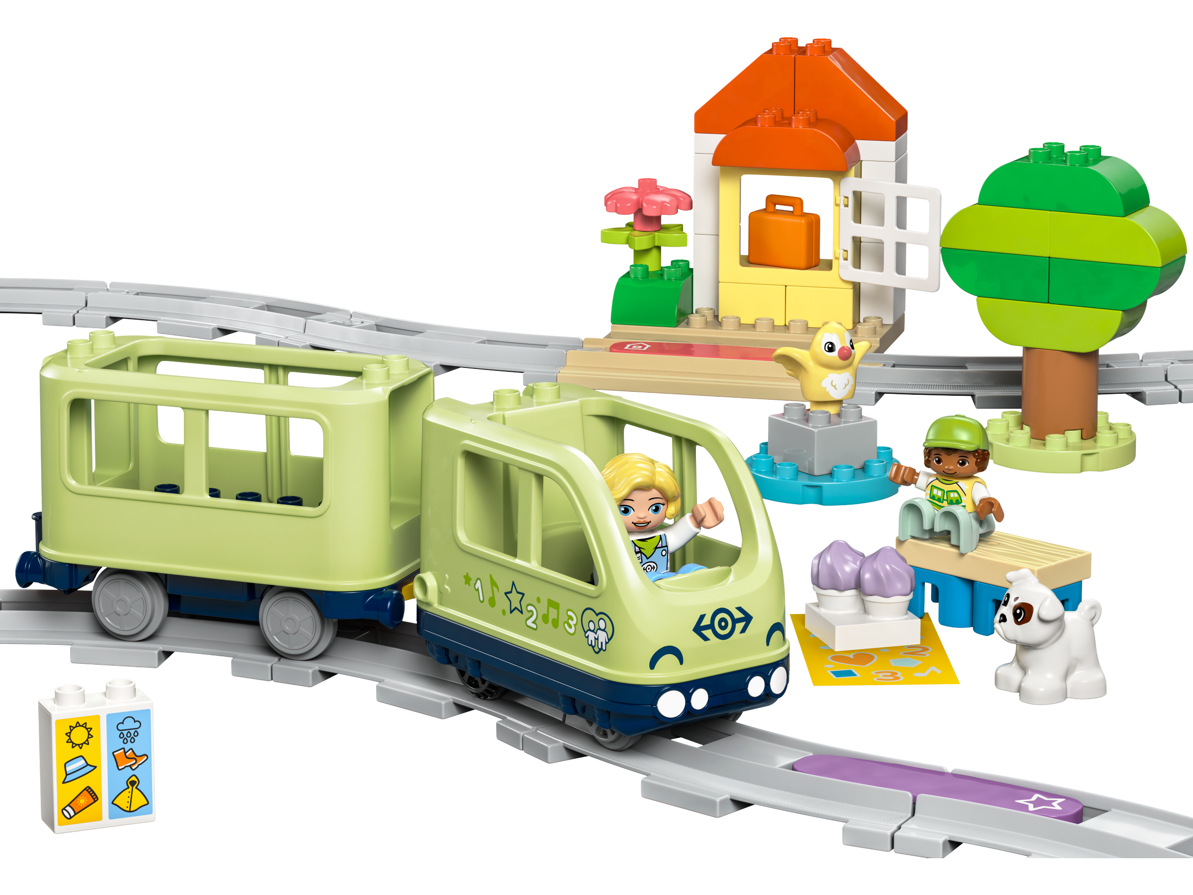 Micutii au parte de multe calatorii de descoperire cu acest set cu tren interactiv. Aleg destinatia de vacanta, pornesc intr-o calatorie plina de lumini, sunete si distractie personalizabila. Aplicatia gratuita LEGO® DUPLO® Interactive Trains extinde joaca, micutii putand conduce trenul printr-un dispozitiv electronic interactiv, si ofera familiilor inspiratie pentru a construi alte destinatii.