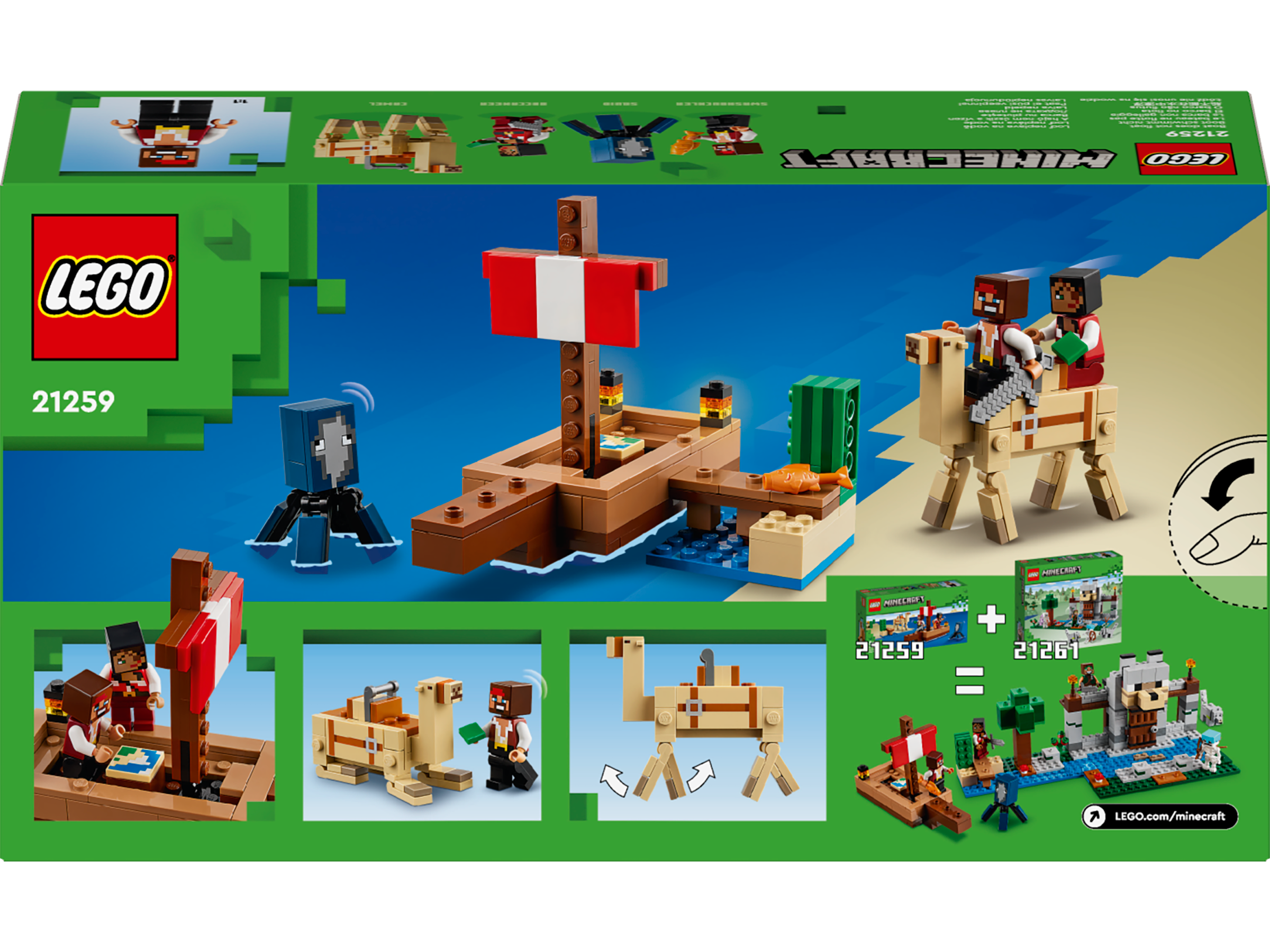 Acest set de aventura cu pirati LEGO Minecraft include un vehicul construibil, plus un calmar, o camila, 2 figurine pirati si accesorii. Incluzand pirati si o barca si, pentru prima oara, o camila adult LEGO Minecraft, acest set LEGO special va capta interesul fanilor Minecraft. saua de 2 locuri a camilei are spatiu pentru ambii pirati pentru a calatori spre urmatoarea lor aventura. Accesoriile, incluzand un peste, o harta, o sabie de fier si un cactus, inspira joaca fantezista. Setul se combina usor cu alte seturi LEGO Minecraft (vandute separat) pentru si mai multe posibilitati de joaca.