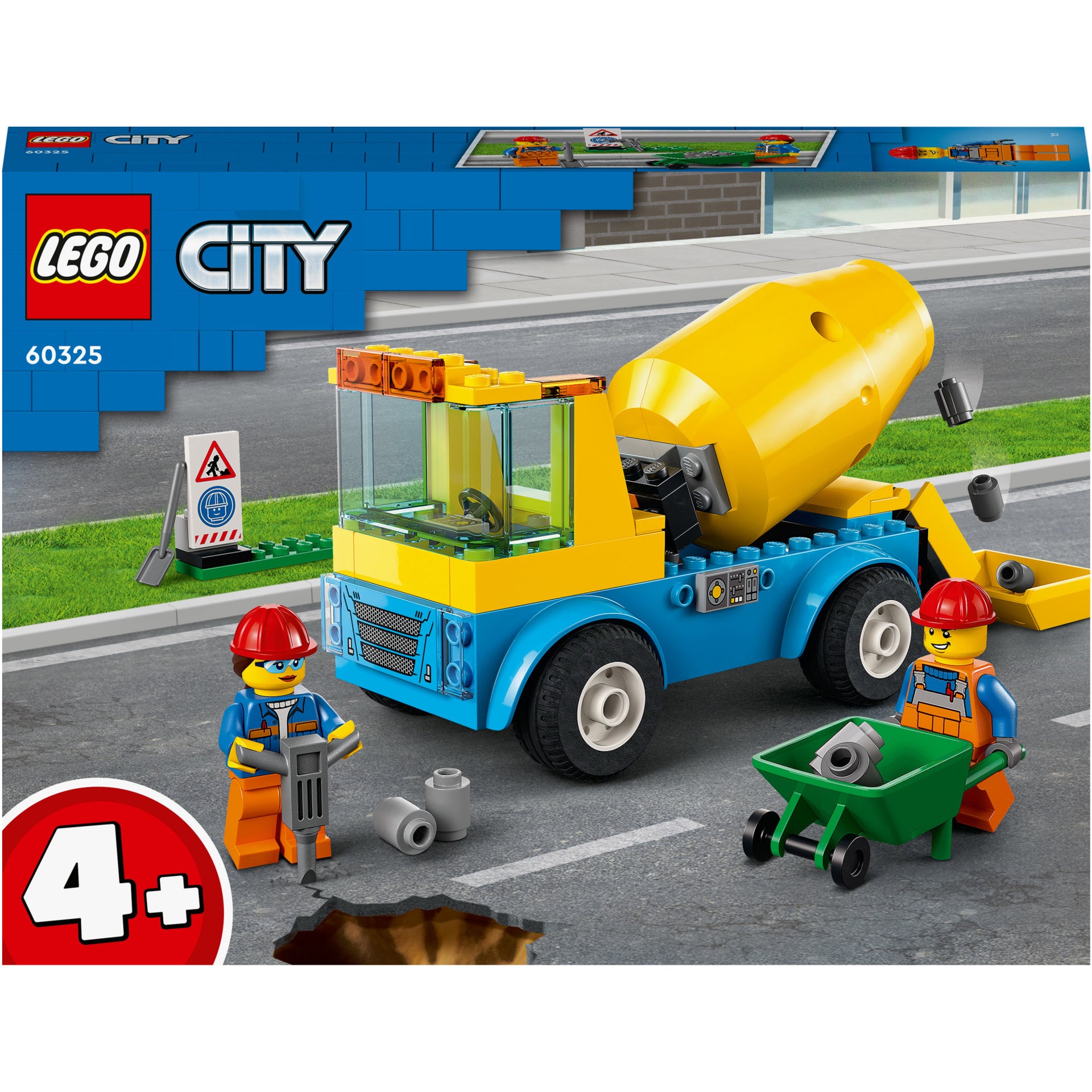 Pune la treaba imaginatia copiilor cu Autobetoniera LEGO® City (60325). Aceasta jucarie vehicul de constructie dotat cu cabina pentru sofer ce se deschide si cu un tambur de amestecat ce se poate roti, include o jucarie ciocan pneumatic, roaba si semn de lucrari rutiere. Adauga cele 2 minifigurine muncitori pentru ore intregi de joaca creativa.