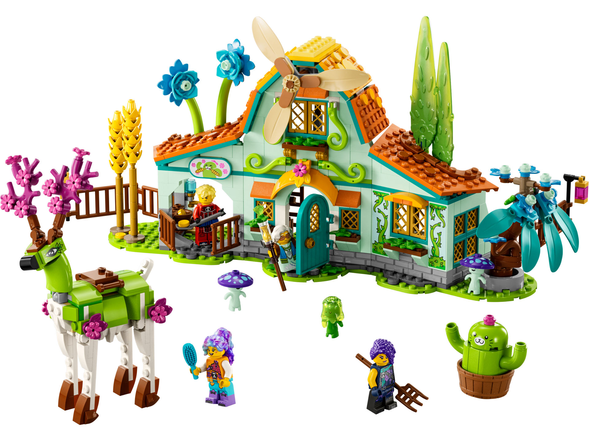 Cunoaste creaturi mitologice si creste flori magice cu setul Grajdul creaturilor din vis! in acest loc incantator, poti avea grija de cerbul cu flori, de cactusul-pisica si de bobocii de vis. Ajuta-l pe Cooper sa hraneasca cactusul taind grau si transformandu-l in boabe si pe Izzie, faurind in vis un cerb zburator in 2 moduri diferite.
