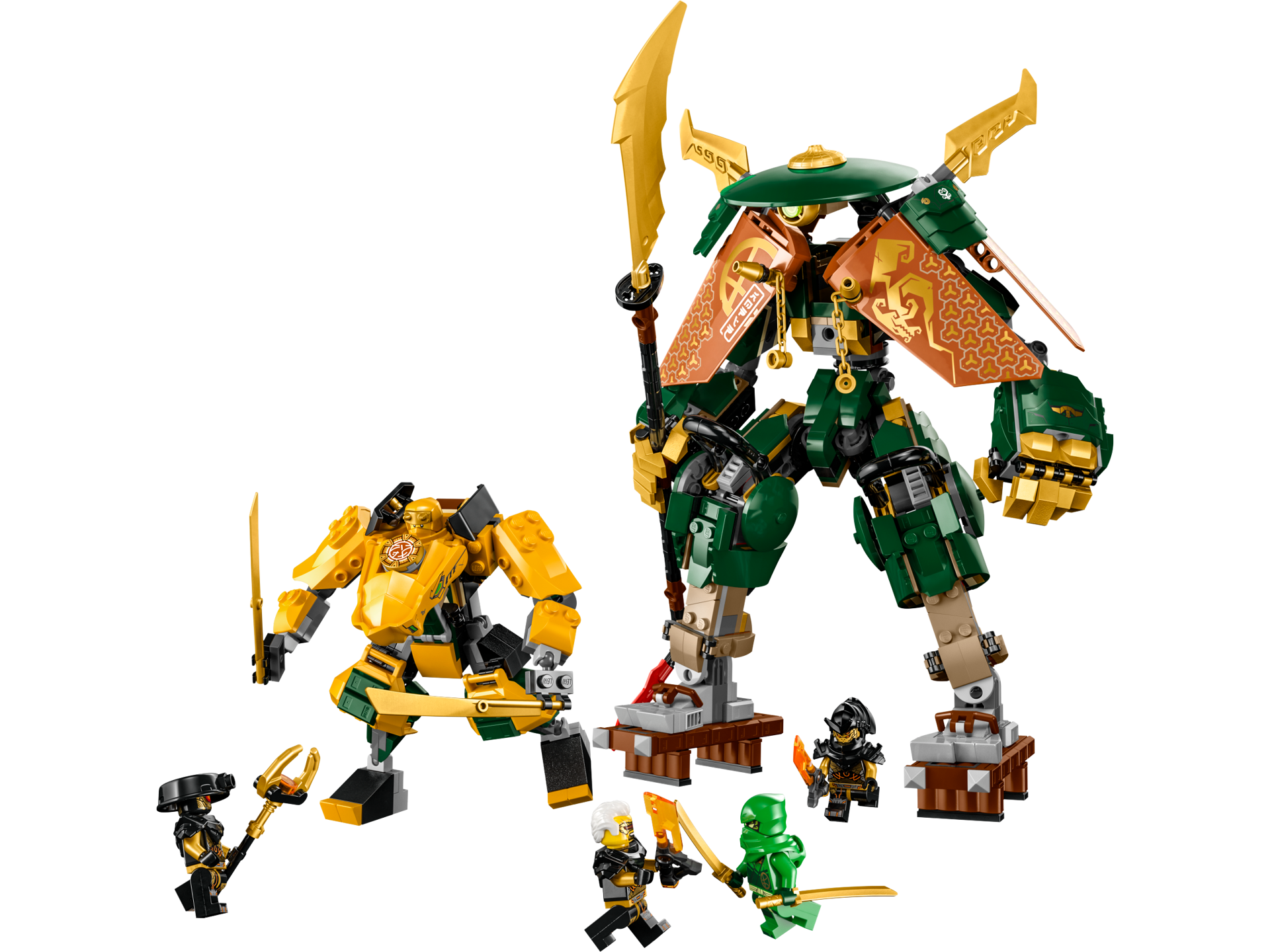 Copiii de 9+ ani pot interpreta scene palpitante de antrenament si lupte din seria TV NINJAGO® Dragons Rising cu setul Robotii din echipa ninja a lui Lloyd si Arin (71794). Acest set de constructie cu totul nou contine robotii articulati ai maestrului ninja Lloyd si discipolului sau Arin, care pot fi combinati pentru a crea un robot mai mare si foarte inarmat pentru joaca nelimitata.