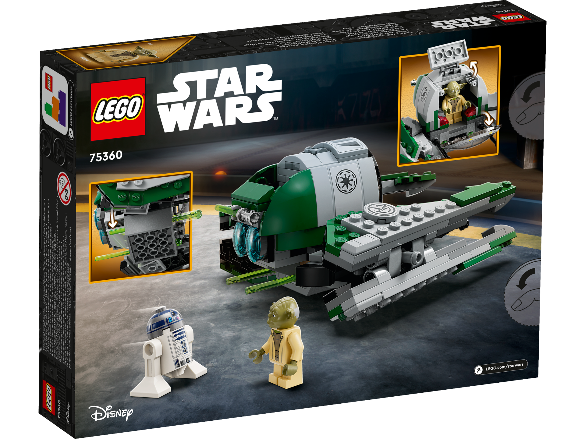 Copiii pot explora o galaxie indepartata cu 2 personaje Star Wars™ populare si cu acest model detaliat din caramizi LEGO® de Jedi Starfighter al lui Yoda (75360). Modelul are un cockpit care se deschide pentru minifigurina LEGO Maestrul Yoda, spatiu pentru figurina LEGO droid R2-D2, 2 lansatoare cu arc si aripi reglabile pentru zbor si aterizare.