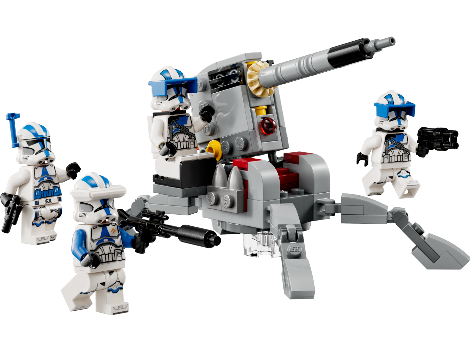 • 4 minifigurine LEGO® Star Wars™ – Un Ofiter din divizia 501 cu un pistol cu explozor, un Clone Specialist din divizia 501 cu o pusca cu explozor si 2 Trooper-i cu armura din divizia 501, fiecare cu un blaster;