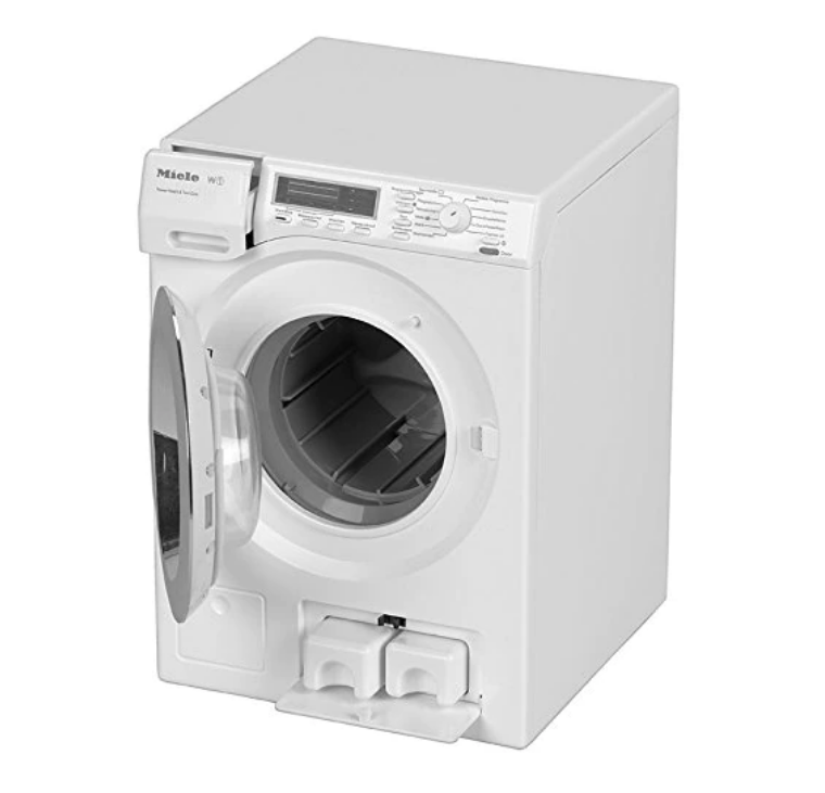 Masina de spalat Miele a fost creata ca o copie fidela a masinii reale. Aceasta masina de spalat cu caracteristici realiste permite copiilor sa isi imite parintii in activitatile lor casnice. Are un LED care indica functionarea masinii si 4 cicluri de spalare: umplerea masinii cu apa (prin tava situata pe panoul frontal), spalarea, scurgerea apei (prin furtunul din spatele masinii), centrifugare. Jucaria emite 4 sunete realiste corespunzatoare celor 4 cicluri de spalare. Masina de spalat functioneaza cu sau fara apa! Necesita 3 baterii x R14 (neincluse).