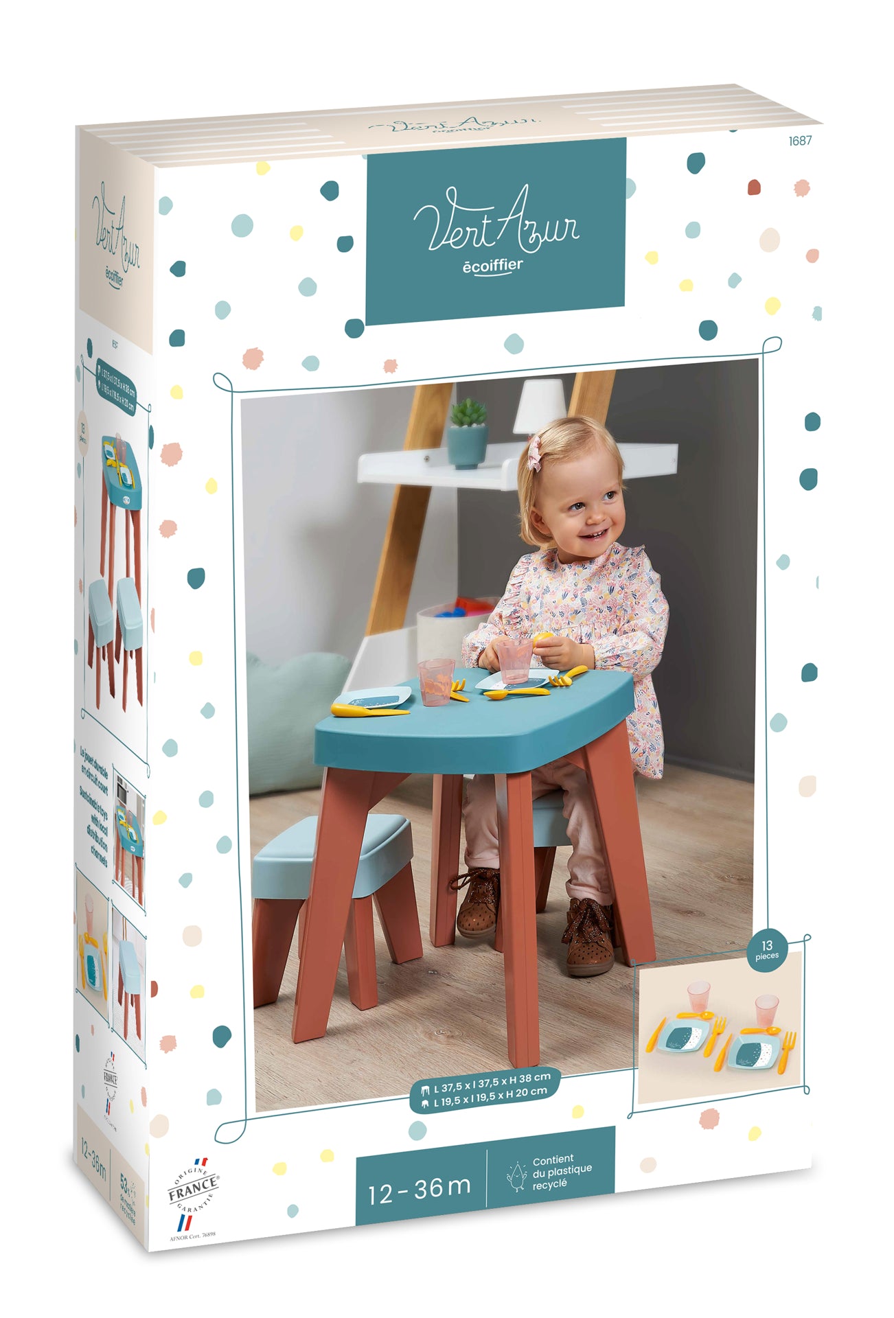 Masuta cu scaune nu ocupa mult spatiu, poate fi folosita atat in exterior cat si in interior. Deoarece este potrivita pentru joaca mai multor copii, ii va ajuta sa-si dezvolte legaturile sociale, sa invete sa comunice mai usor si sa-si dezvolte vocabularul. Ecoiffier aduce copiilor jucarii de inalta calitate, cu un design original, care indeplinesc chiar si cele mai inalte criterii europene, motiv pentru care sunt potrivite chiar si pentru cei mai mici copii. Producatorul frantuzesc Ecoiffier se remarca prin designul sau original influentat de ultimele tendinte, criterii de siguranta in timpul productiei si calitate la un pret rezonabil.