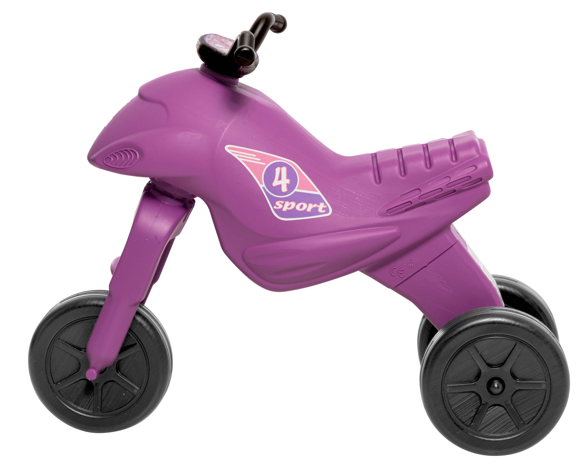 Tricicleteta nu are pedale, copilul trebuie sa se impinga cu picioarele.