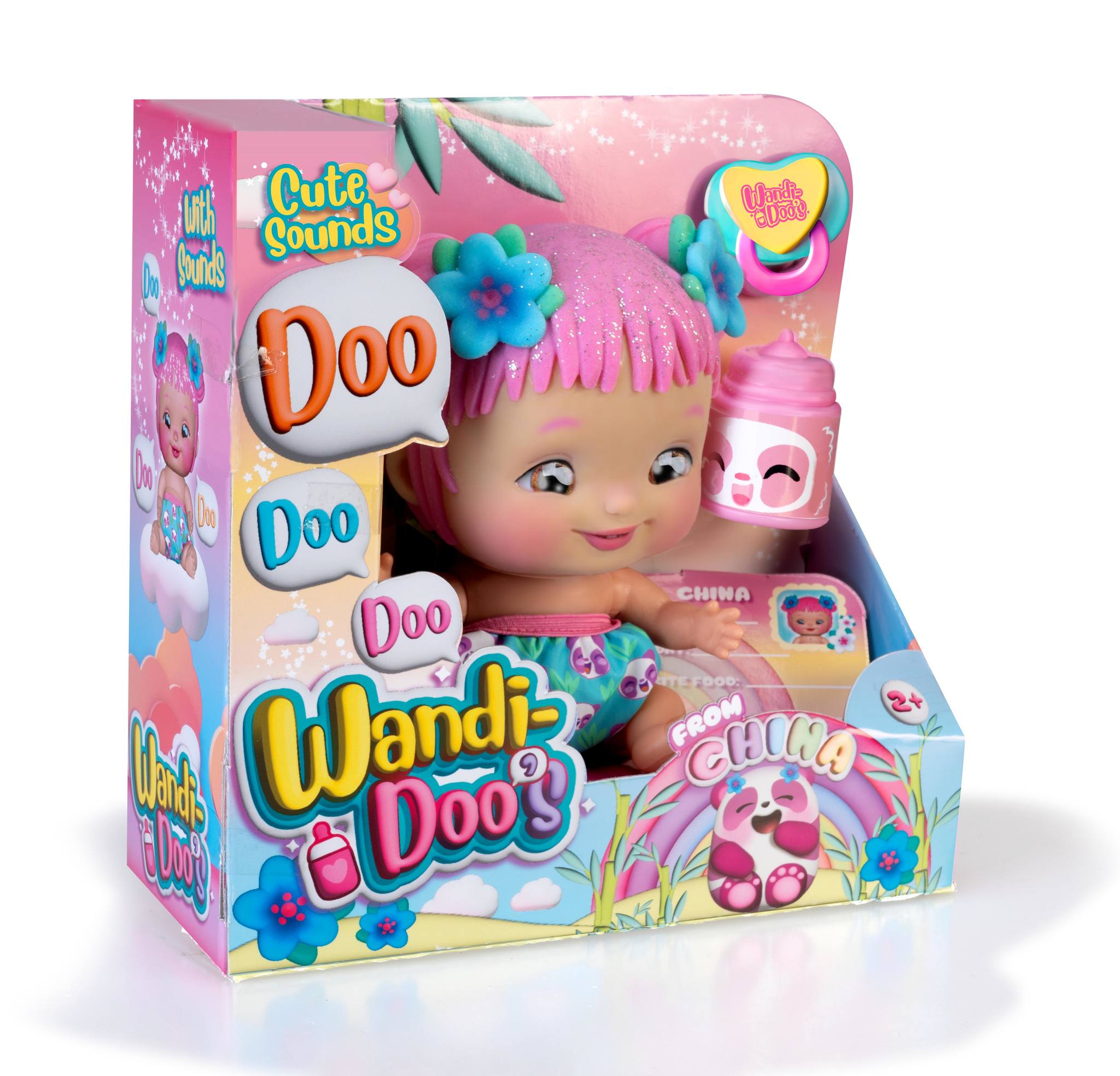 Papusile Wandi-Doo sunt cei mai dragalasi bebelusi care vin din diverse tari, aducand cu ei multa distractie si iubire. Aceste papusi colorate si fantastice vor captiva imaginatia copiilor cu limbajul lor universal: adorabilul Doo-Doo-Doo! Este atat de amuzant sa le urmaresti cum "vorbesc" intre ele! Fiecare papusa vine insotita de un biberon, o suzeta cu magnet si un card de identificare personalizabil, astfel incat copilul tau sa poata avea grija de ele ca de un bebelus adevarat.