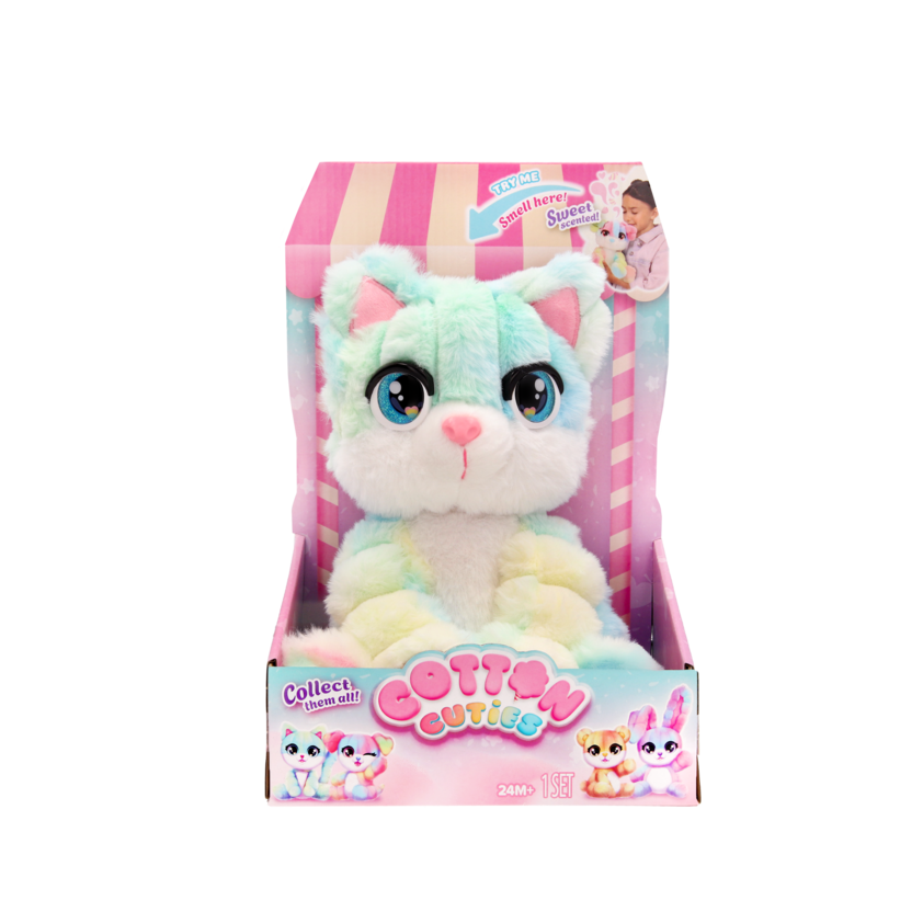 Descoperă colecția Cotton Cuties, brandul de plușuri tradiționale care arată, se simt și chiar miros ca vata de zahăr! Colorate, pufoase și parfumate, aceste jucării aduc bucuria copilăriei direct în brațele celor mici.