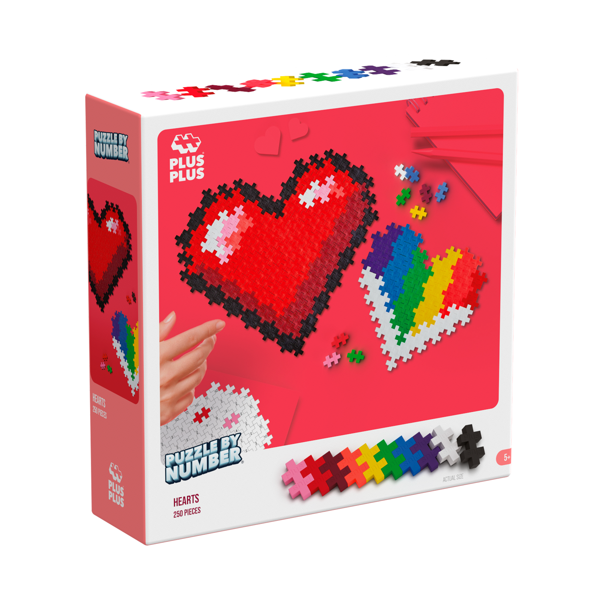 Creati doua mozaicuri de inima cu Puzzle by Number potrivind culorile si numerele. Utilizati mozaicurile pentru a va decora camera sau pentru a construi ceva nou. Nu este nevoie de lipici sau calcat. Puzzle by Number combina jocul distractiv cu invatarea, iar setul Inimi vine cu 250 de bucati colorate.