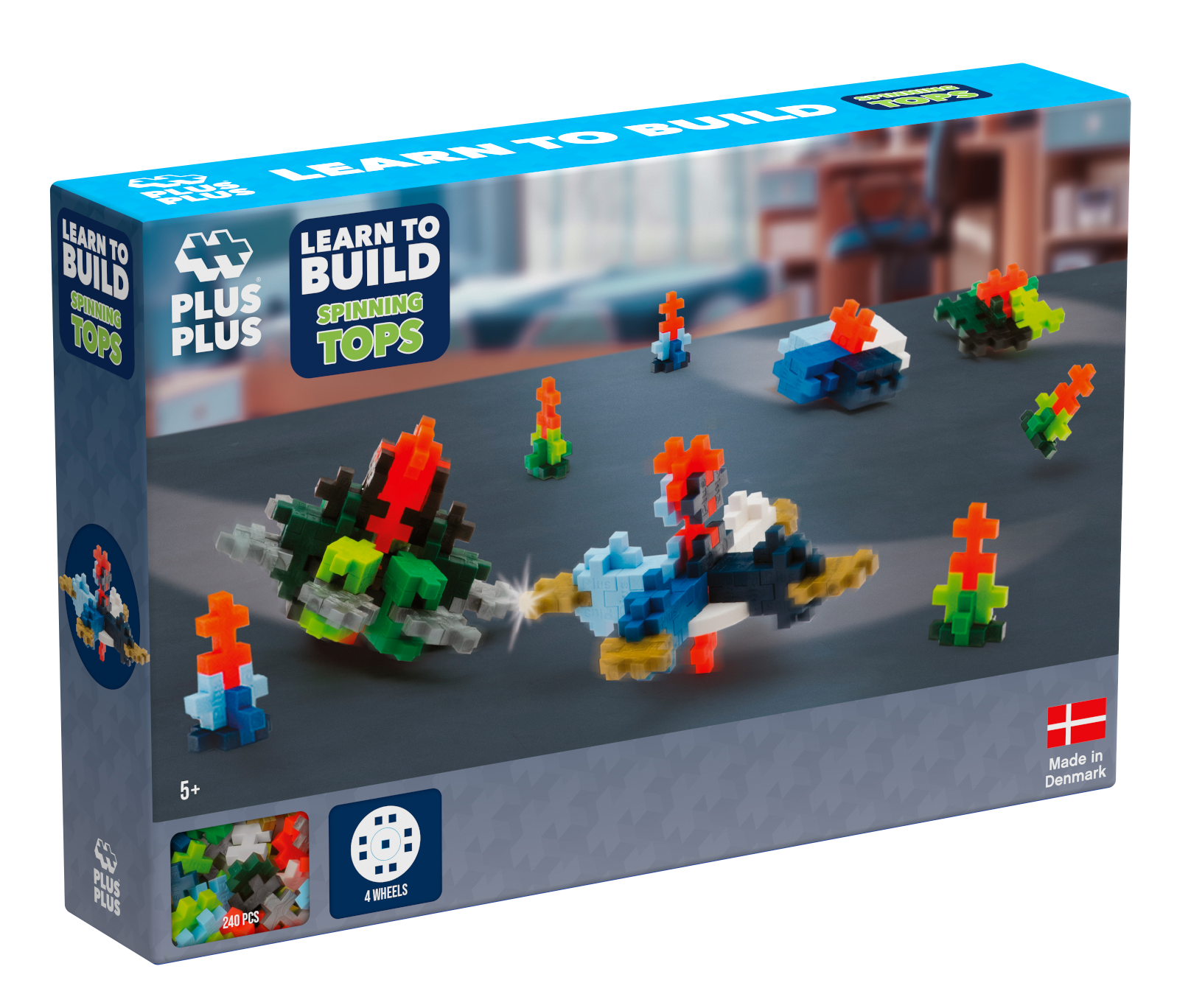 Invata sa construiesti topuri cu Plus-Plus. Acest set ii invata pe copii cum sa construiasca topuri super cool, unde copiii se pot provoca pe ei insisi si pe prietenii lor despre cine poate construi cel mai avansat, cine poate roti cel mai mult si multe altele. Setul vine cu 240 de piese, 4 roti reversibile.