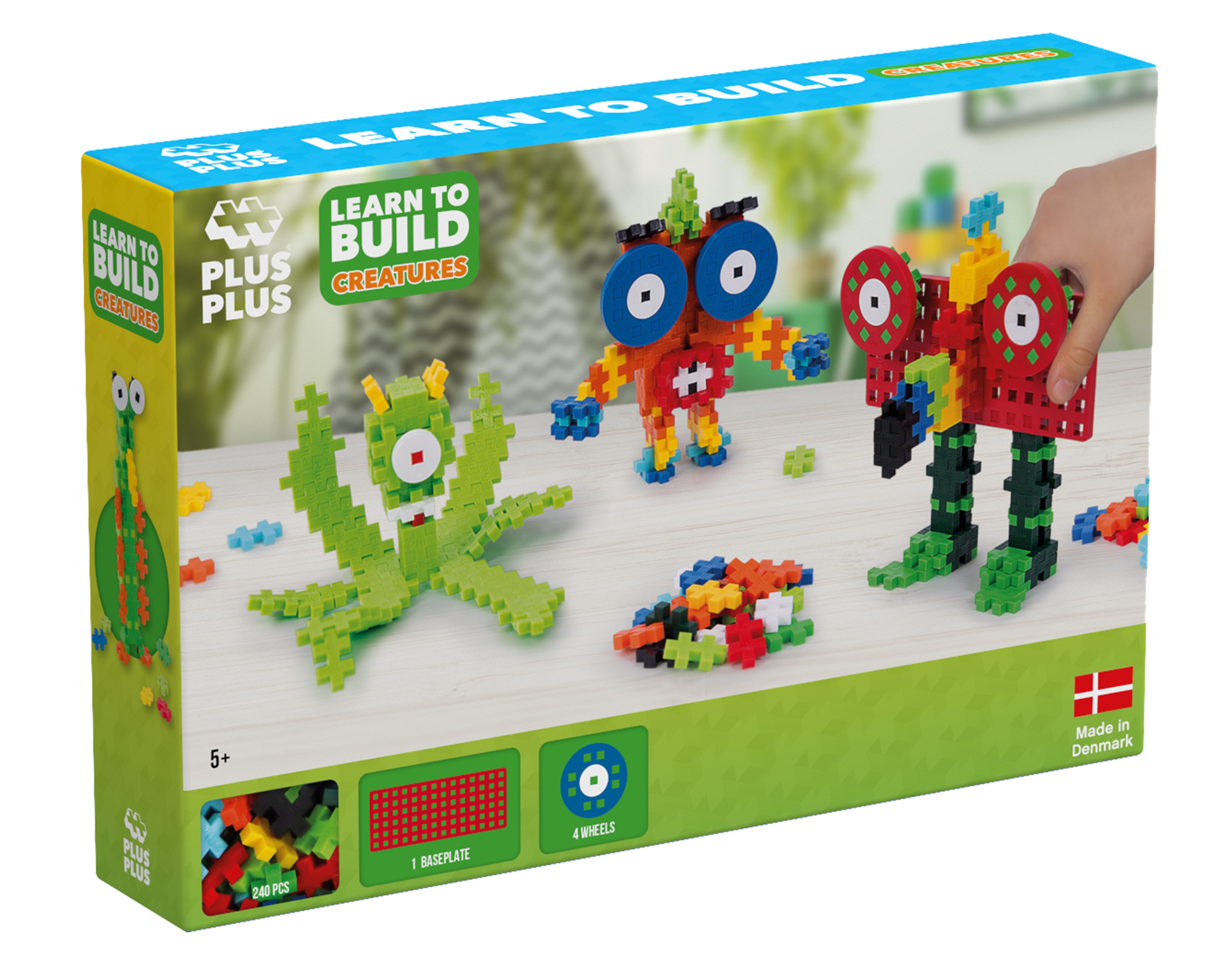 Invata sa construiesti creaturi cool si ciudate cu Plus-Plus. Acest set ii invata pe copii cum sa construiasca creaturi amuzante cu ajutorul placilor de baza si a rotilor. Setul vine cu 240 de piese, 1 placa de baza mica si 4 roti reversibile. Un ghid ofera instructiuni pas cu pas pentru a construi aceste creaturi.