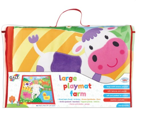 O salteluta mare, multisenzoriala, viu colorata cu 6 animalute de la ferma. Confectionata dintr-un material moale si captusita pentru confortul copilului, salteluta este locul perfect de joaca pentru copilul dvs. Pe masura ce copilul se dezvolta, acesta va putea explora sunetele si texturile. Cu o multime de elemente care ii vor capta atentia micutului: ciocul ratustei care scoate sunete, nas lucios, aripa, cap de calut si coada de purcel. Salteluta contribuie la dezvoltarea motricitatii, a coordonarii ochi- mana si a functiilor cognitive.