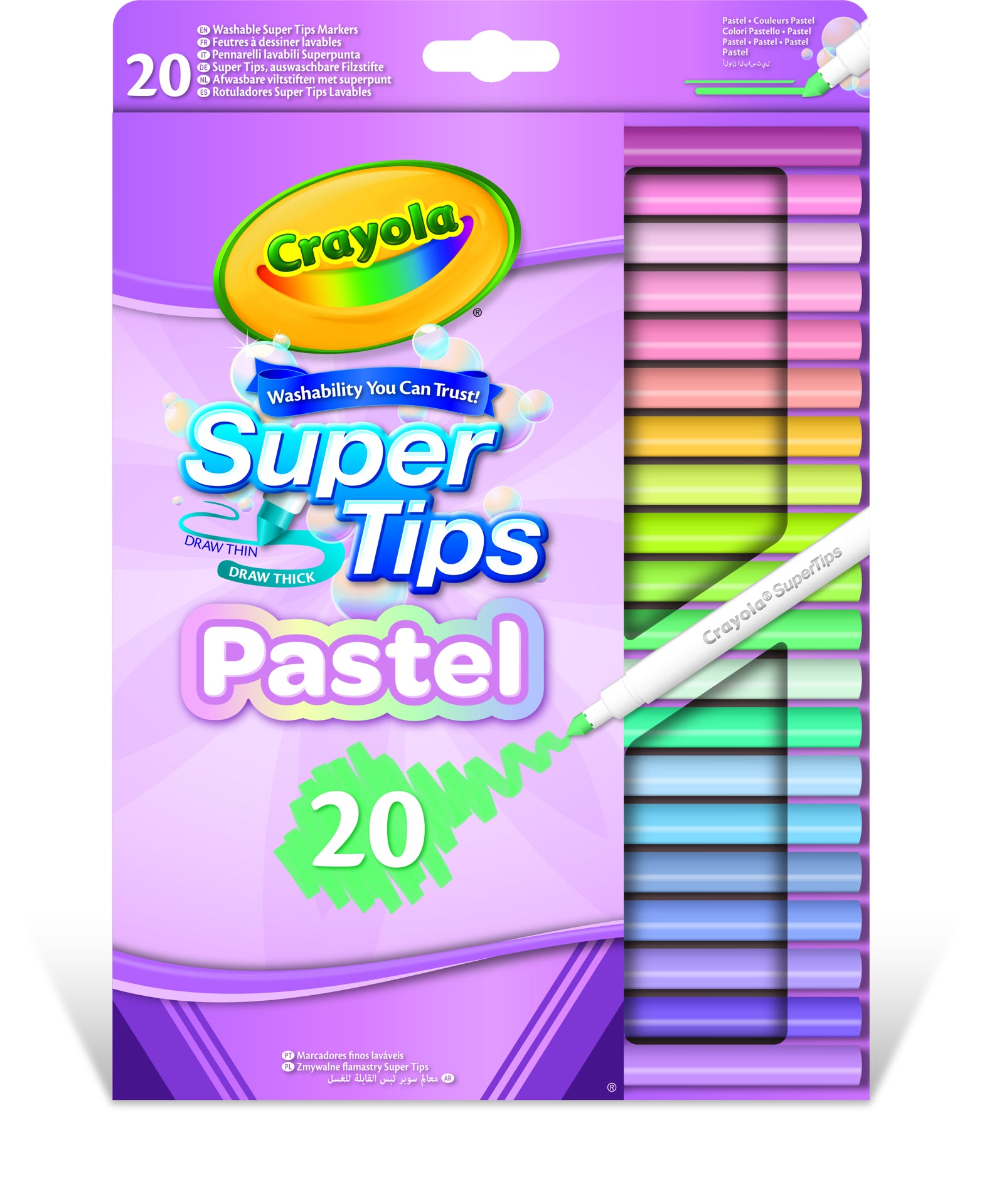 Setul de markere lavabile Crayola Super contine 20 de markere in culori pastelate.