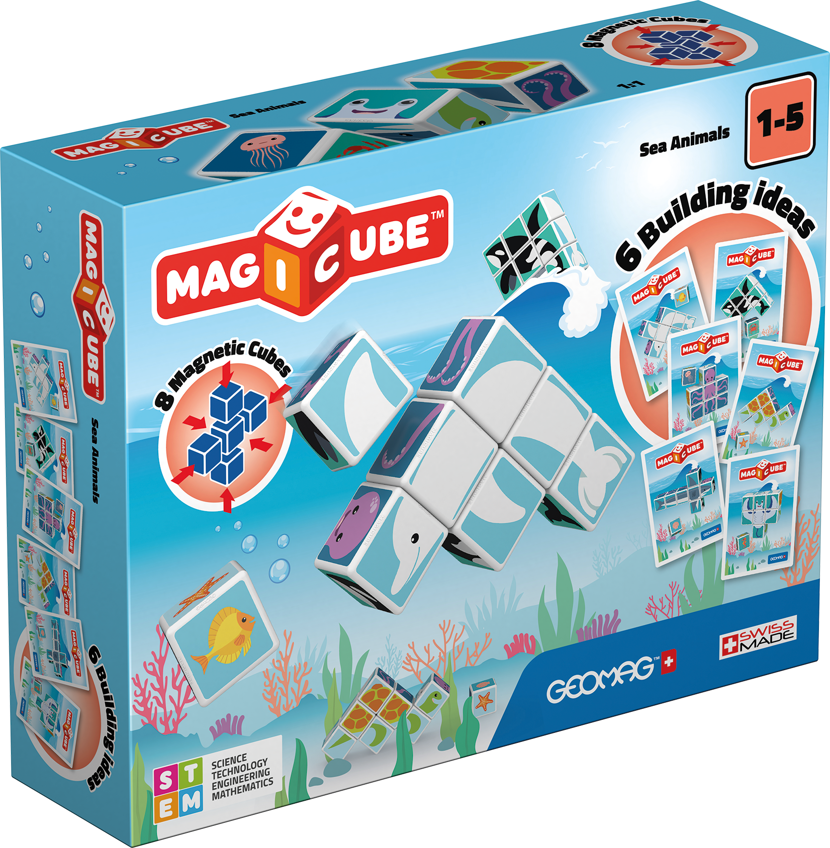 Jocul contine 8 cuburi magnetice si 11 de clipuri magice.