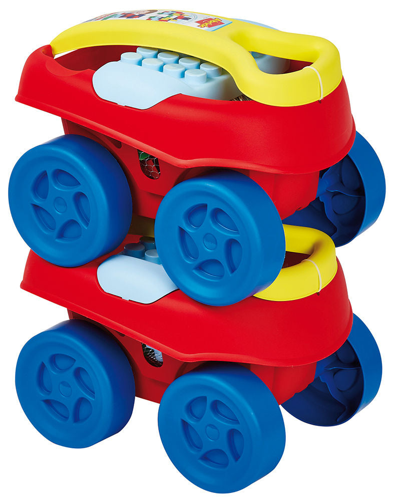 Setul de construit contine 40 de cuburi mari care se afla intr-o masinuta practica, a carei capac se foloseste ca baza. Cuburile de construit multicolore si de dimensiuni diferite, ofera copiiilor posibilitatea de a construi numeroase cladiri. Cuburile pot fi asamblate foarte usor.