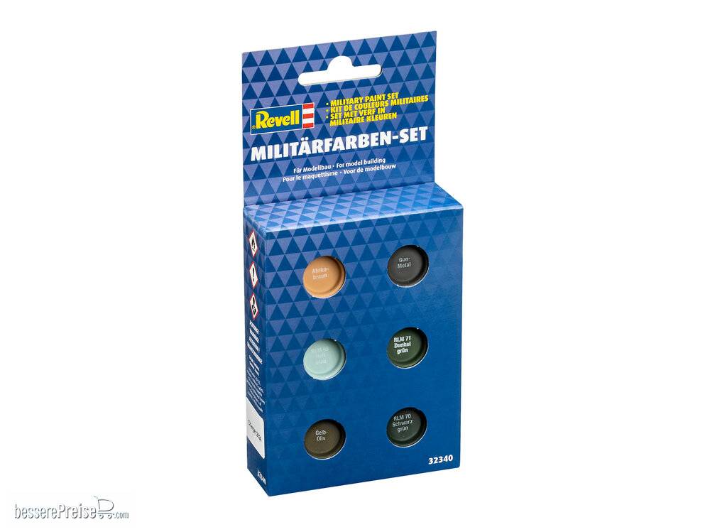 Set de Culori Email – Military 1 (6x14 ml) – Revell Rev32340 este un set de vopsele special conceput pentru modelismul militar. Include 6 culori email de înaltă calitate, fiecare câte 14 ml, ideale pentru vehicule, tancuri, aeronave și alte modele militare, oferind finisaj uniform și durabil.