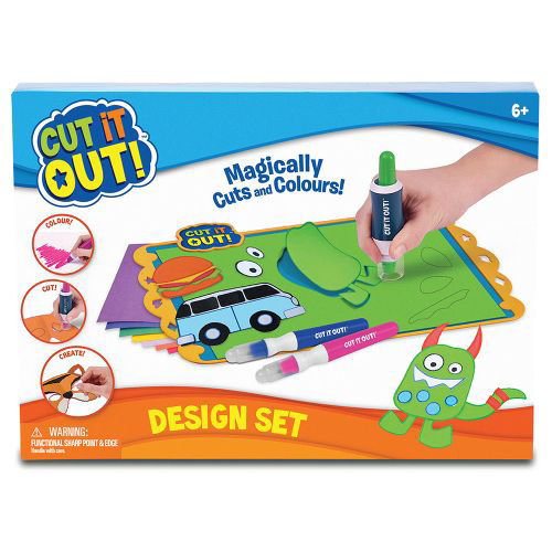 Cu Setul de Design Cut It Out, copiii pot colora si decupa pentru a face diferite creatii din hartie.