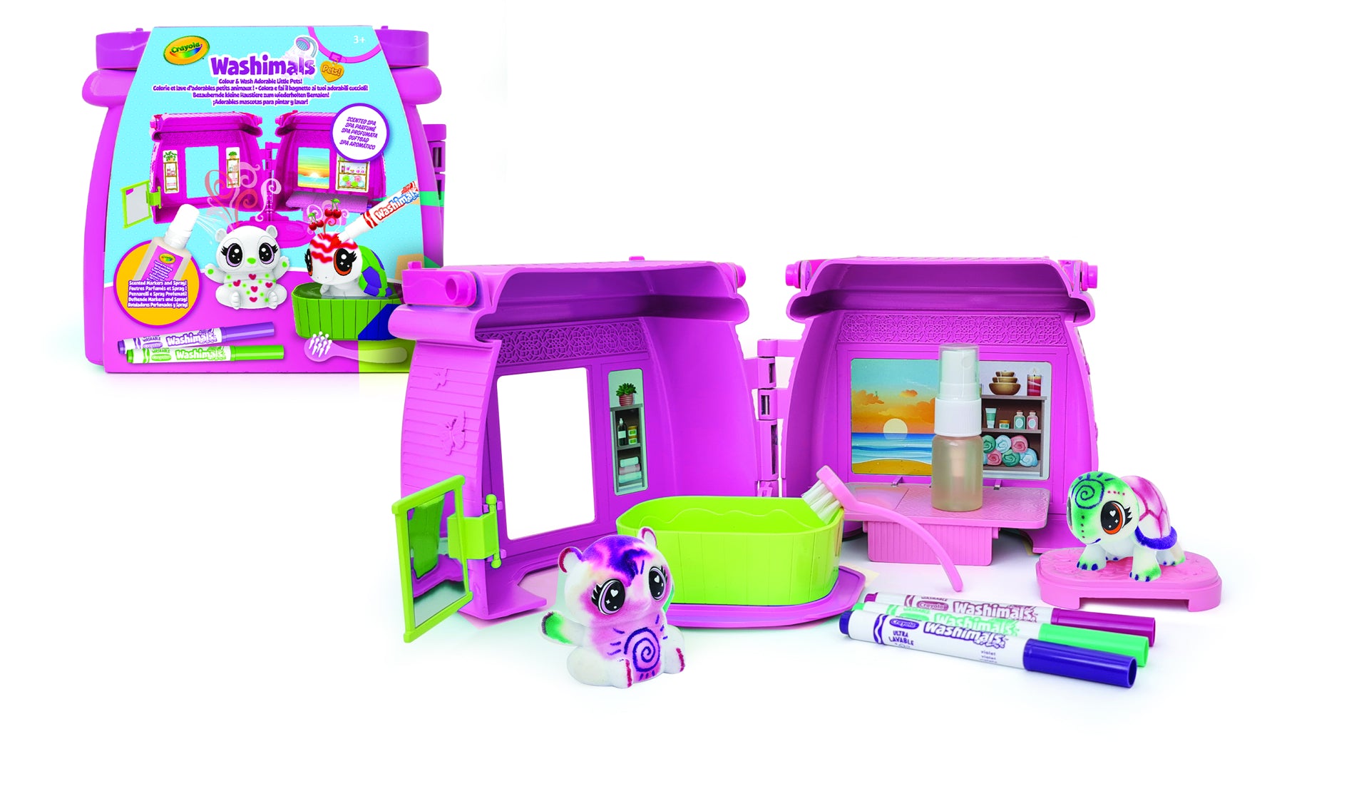 Copiii pot crea modele colorate personalizate pe animalele lor de companie cu markere lavabile, apoi spala animalele pentru a crea noi modele din nou si din nou.