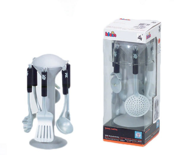 Setul contine: spumiera; cutit pentru pizza; lingura pentru gatit; paleta; lingura pentru paste; polonic si suport pentru ustensile.