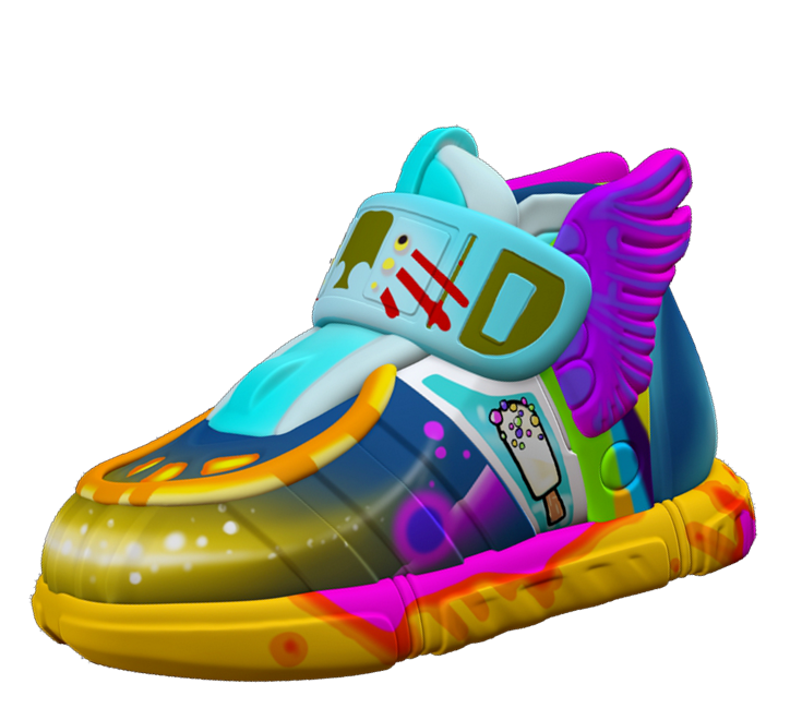 Conţinut: 1 cutie Sneak’Artz, 1 pantof sport, 1 breloc, 3 pixuri lavabile, 3 autocolante talismane, 1 foaie de