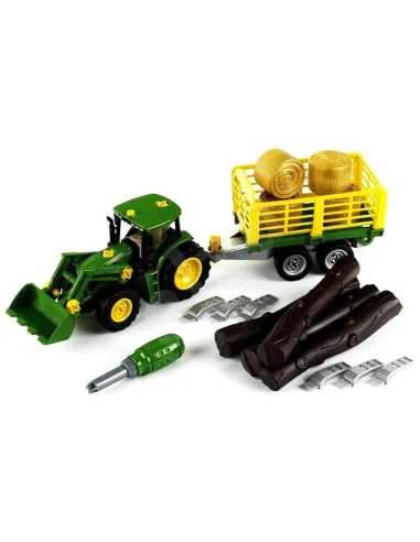 Tractor John Deere cu cărucior de lemn și fân - tractor și remorcă cu sistem de șurub integrat - demontat în piesele individuale - tractor la scara 1:24 în John Deere design John Deere tractor format din: șasiu, 2 față și 2 ...